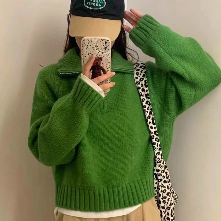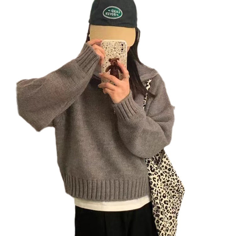| nameOriginal | Design half zipper lapel pullover women's autumn and winter New Korean style stand collar loose temperament sweater outer wear |