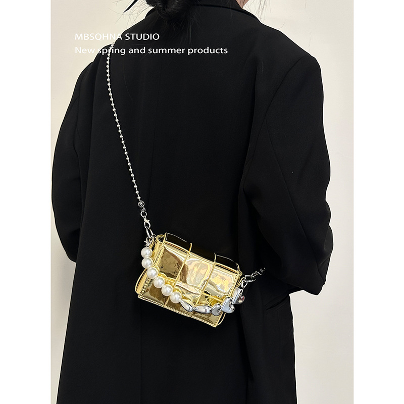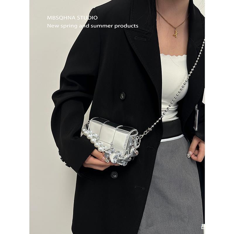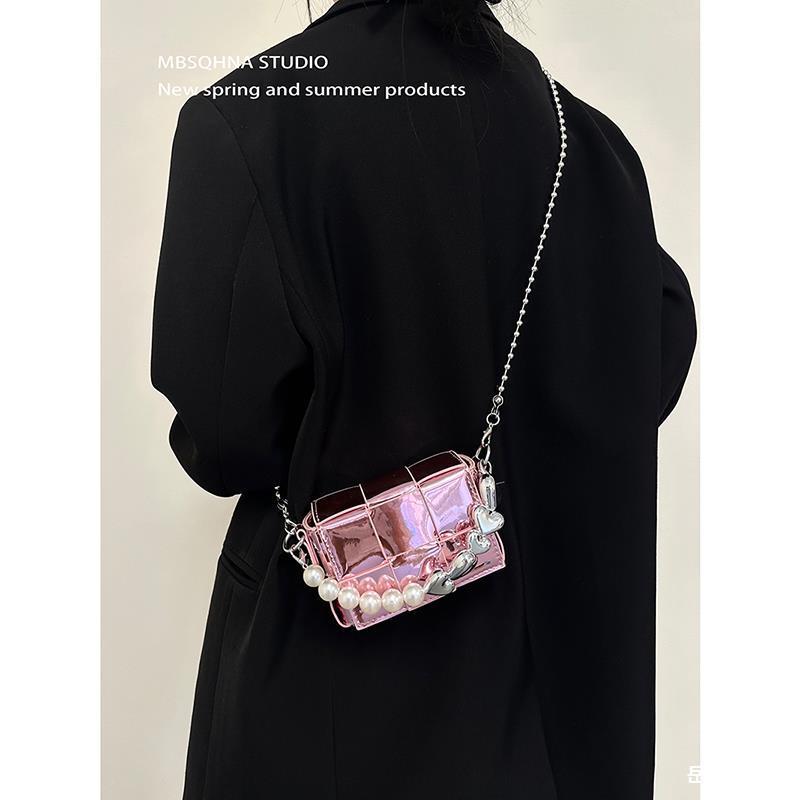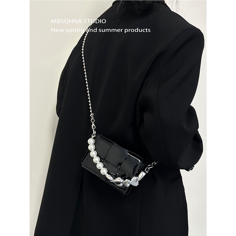 Design Mini Woven Bag Women's Summer Pearl Chain Portable Shoulder Crossbody Mini Red Bag