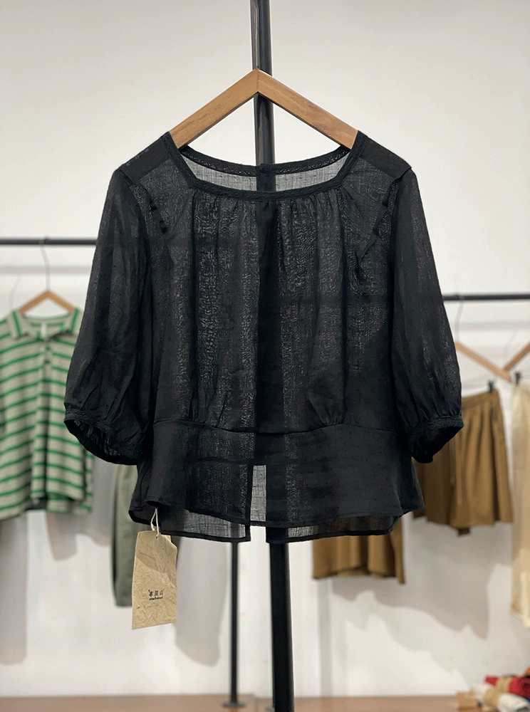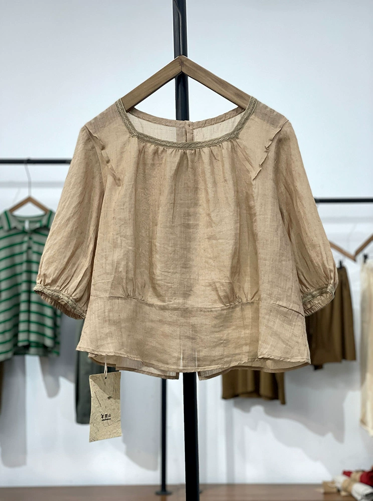 Design niche back slit short-sleeved cotton and linen shirt