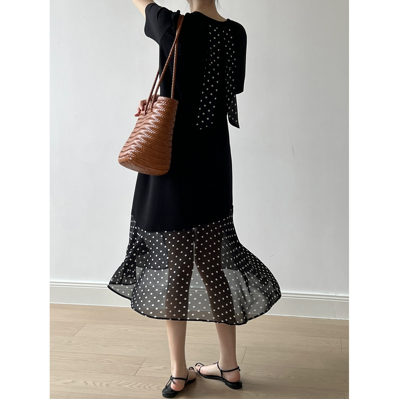 | nameOriginal | Design niche polka dot back bow dress |