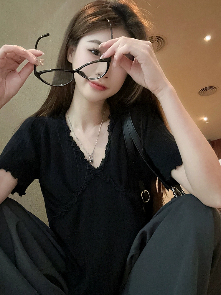 | nameOriginal | Design niche right shoulder summer slimming short-sleeved T-shirt |