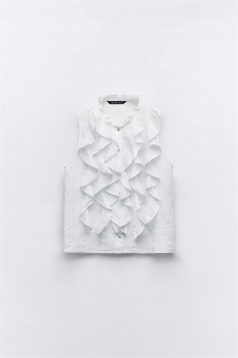 Design niche ruffled layered sleeveless linen