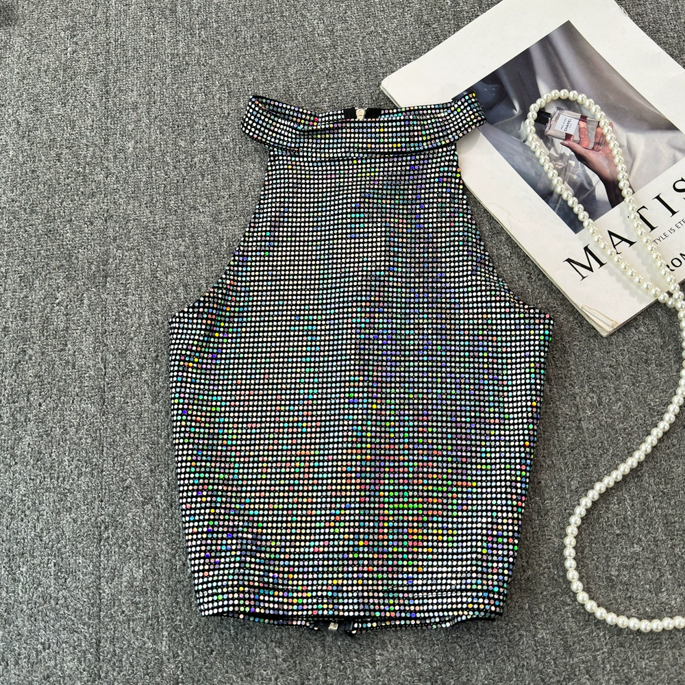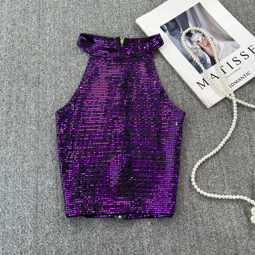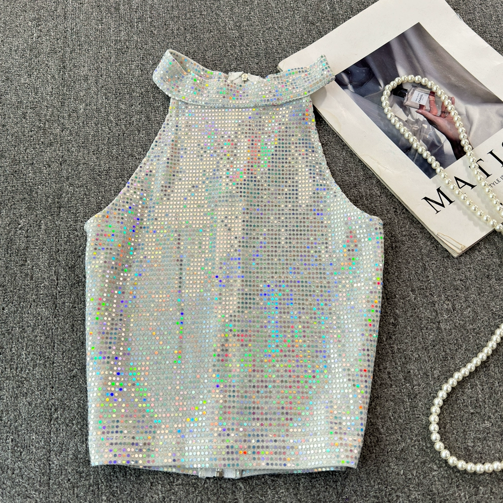 Design niche sexy sequined sparkling camisole women's summer wear chic short style outer wear inner bottoming top