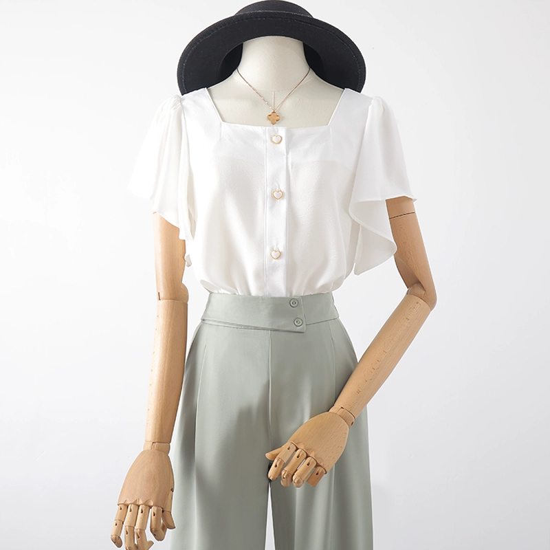 | nameOriginal | Design niche short-sleeved square collar chiffon thin shirt |