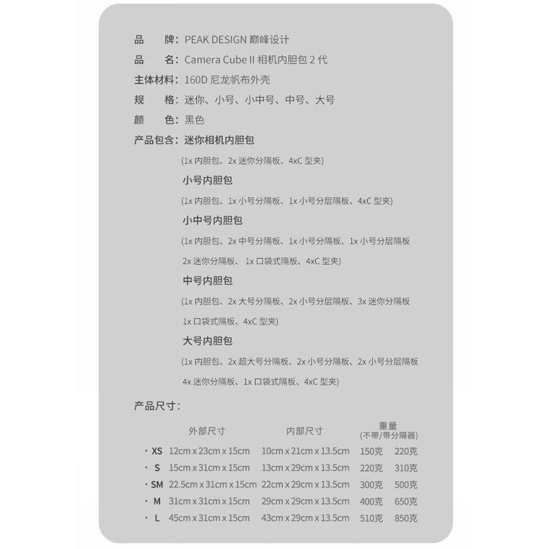 | nameOriginal | Design Peak Design Camera Cubes second generation applicable micro single non-reverse Camera liner package |