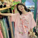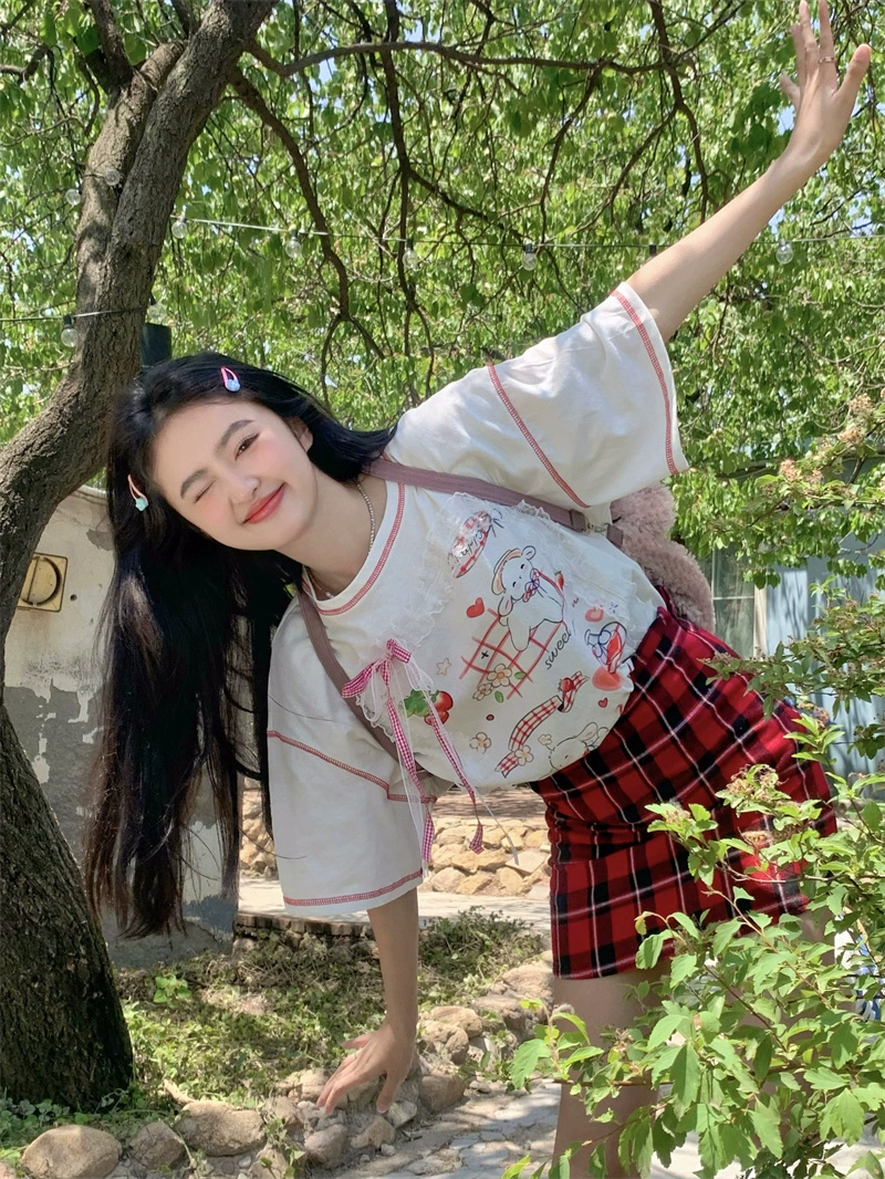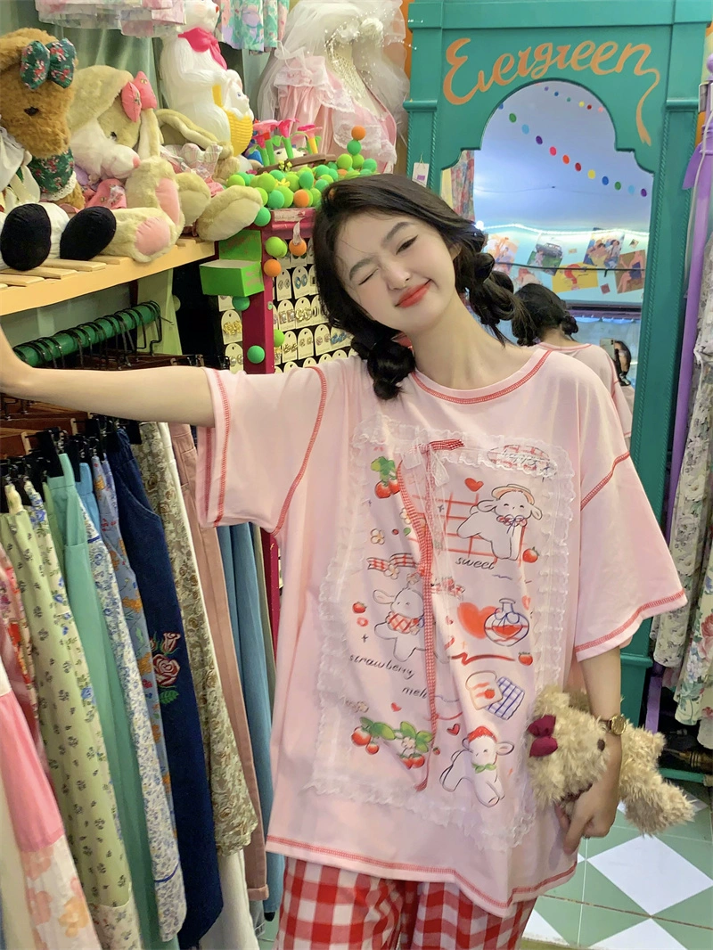 Design printed short sleeve summer loose ins lace