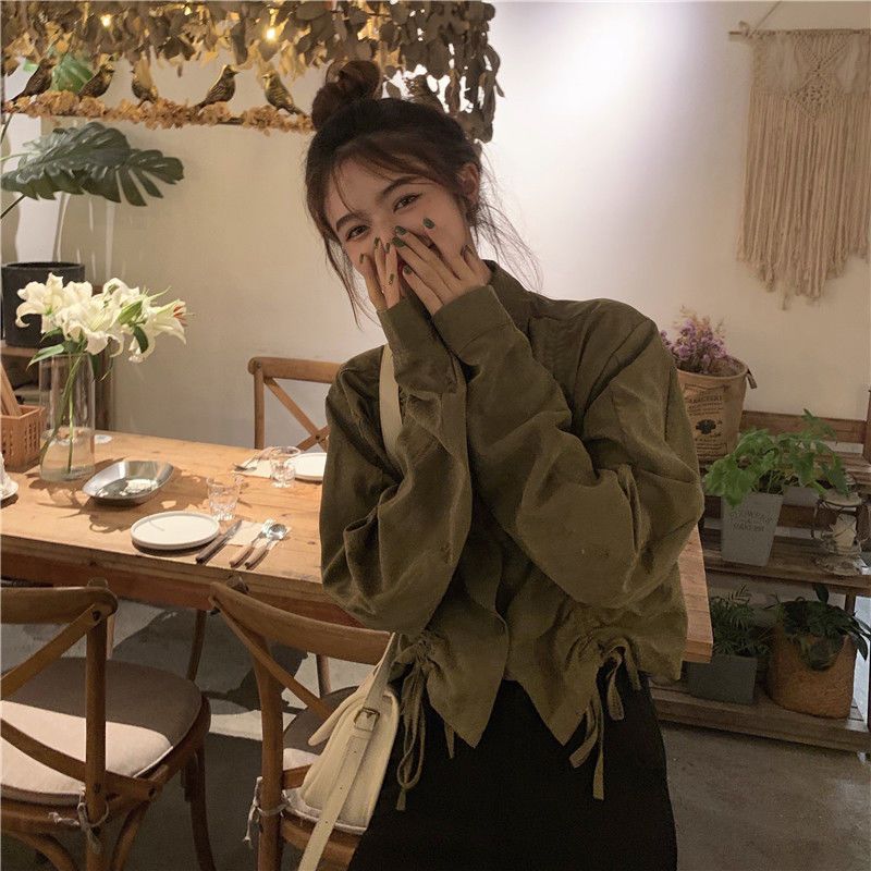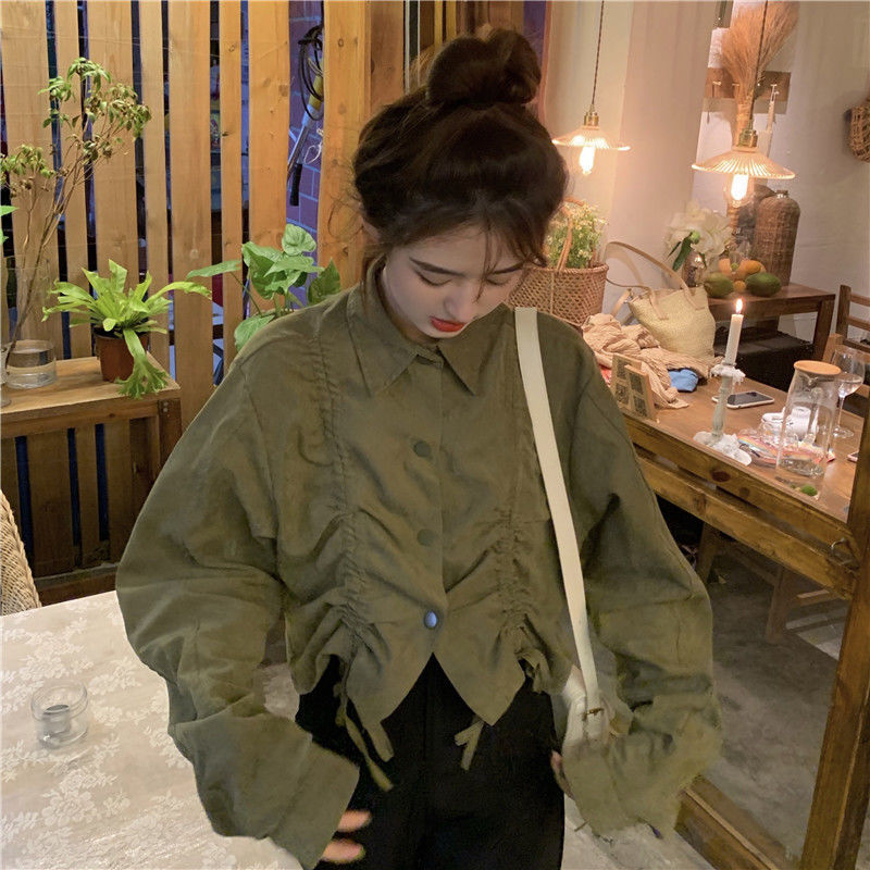 Design sense army green long sleeve loose casual thin coat for women Autumn 2023 new all-match small jacket fashionable top