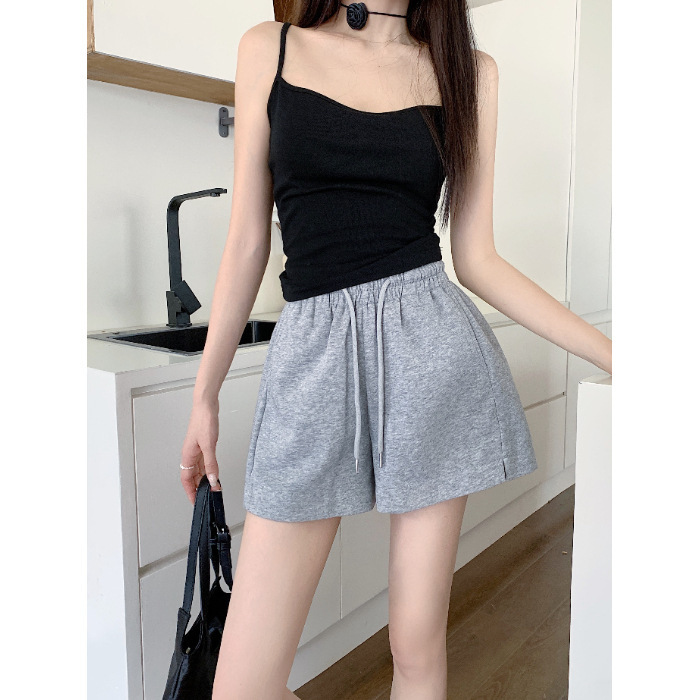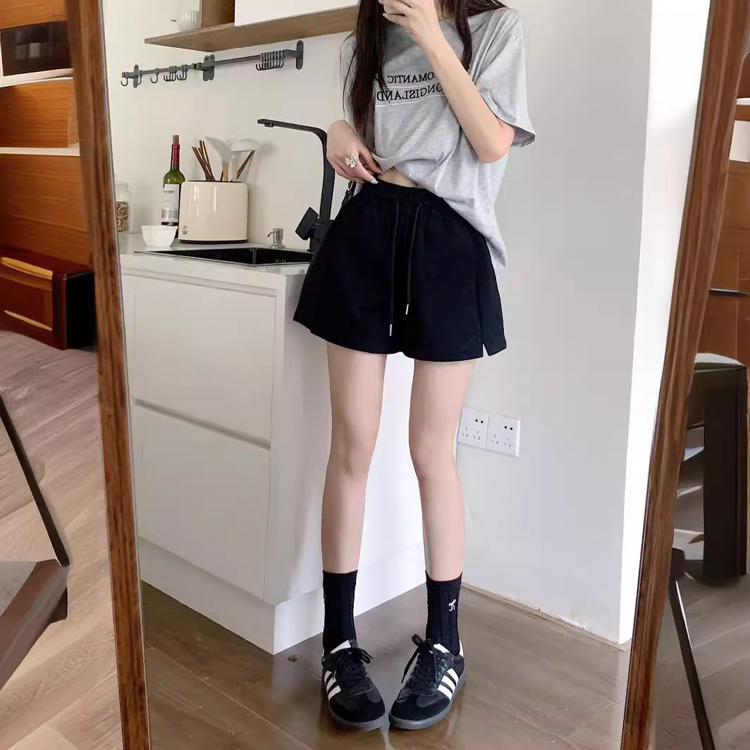 | nameOriginal | Design Sense Black Drawstring Wide Leg Pants Women's New Summer Staggard Waist Straight Leg Pants Casual Sports Shorts |