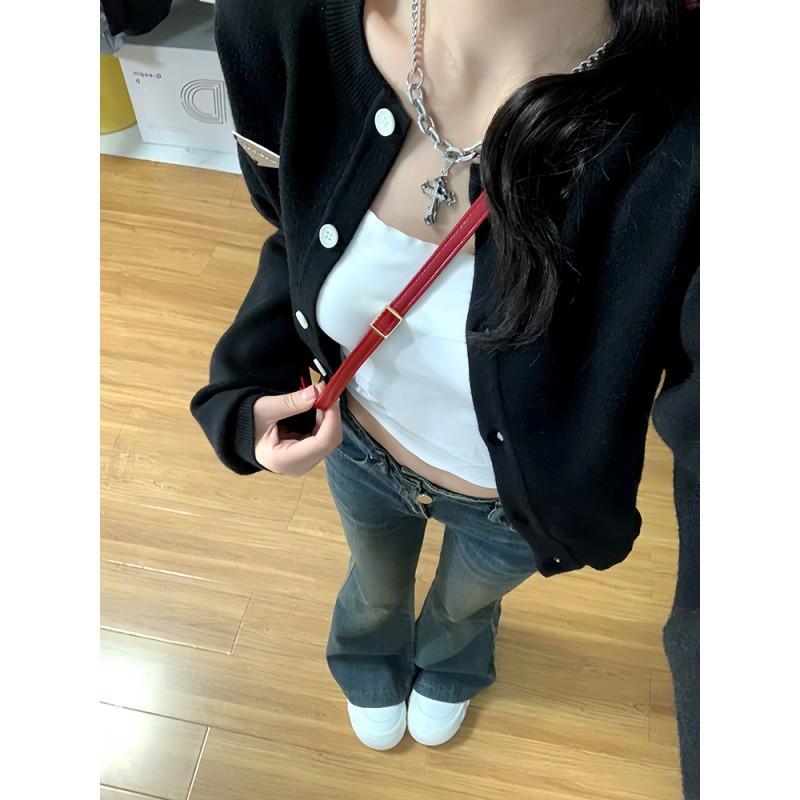 Design Sense Black Sweater Knitted Sweater Two-piece Set Women’s Autumn New Slim Look Western Style Loose Short Coat Top
