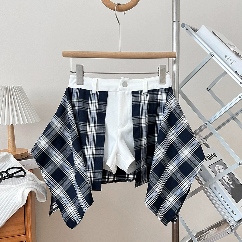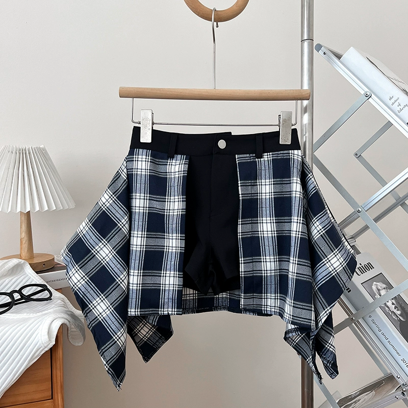 | nameOriginal | Design sense, casual and versatile plaid stitching, high waist, slimming, irregular shorts, wide leg pants, casual pants, hot pants for women summer |