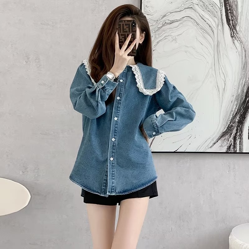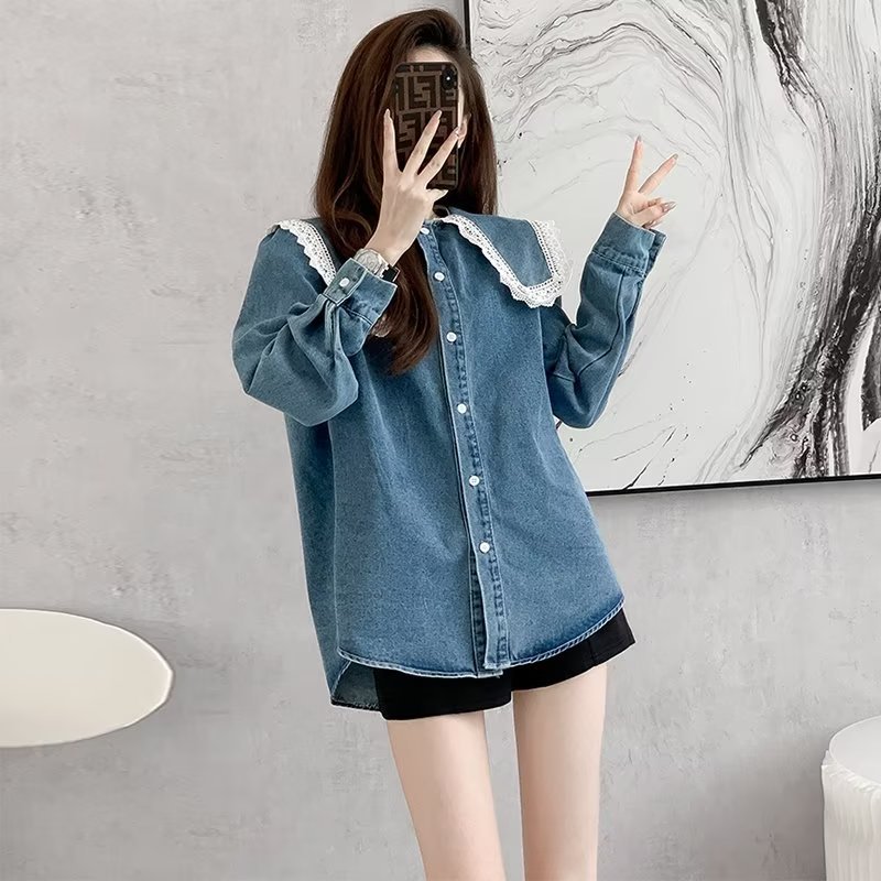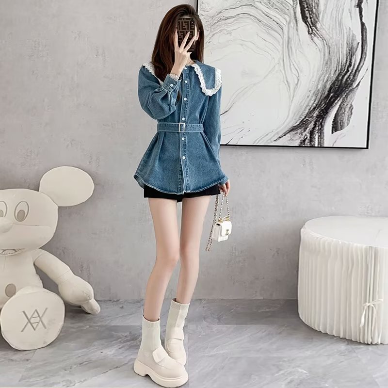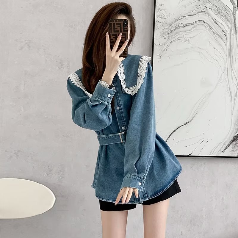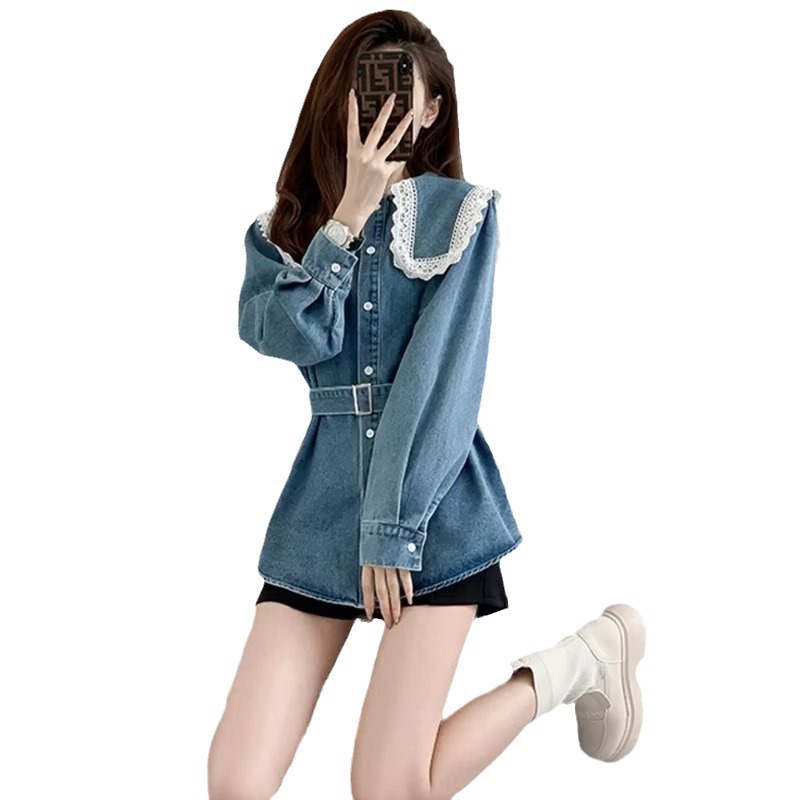 | nameOriginal | Design Sense Doll Collar Denim Shirt Women's Spring and Autumn New Large Size Fat Girl's Tight Waist Slimming Lace Casual Coat |