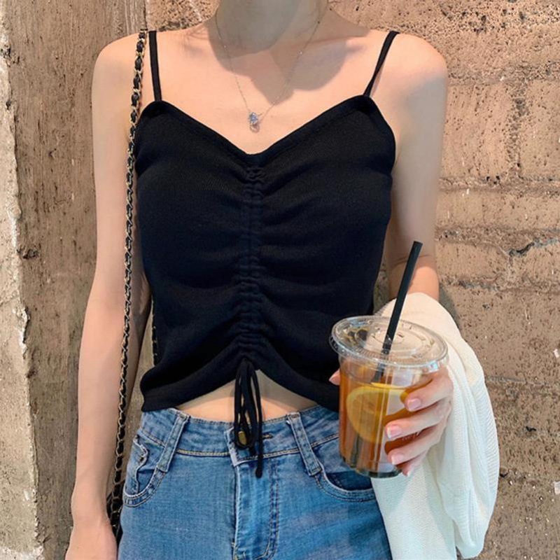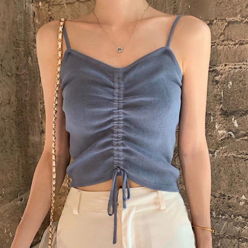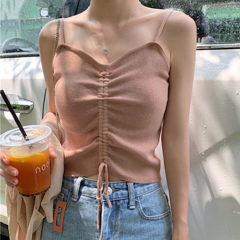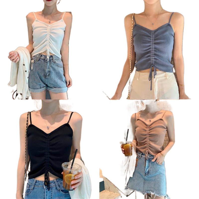 | nameOriginal | Design Sense Drawstring Camisole Women's 2024 Summer New Korean Style Slim-fit Collar Knitted Sleeveless Base Top Trendy |