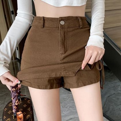 | nameOriginal | Design Sense Drawstring Denim Bust Skirts Summer Hot Girls New High Waist Slimming A- Shaped Short Skirt |