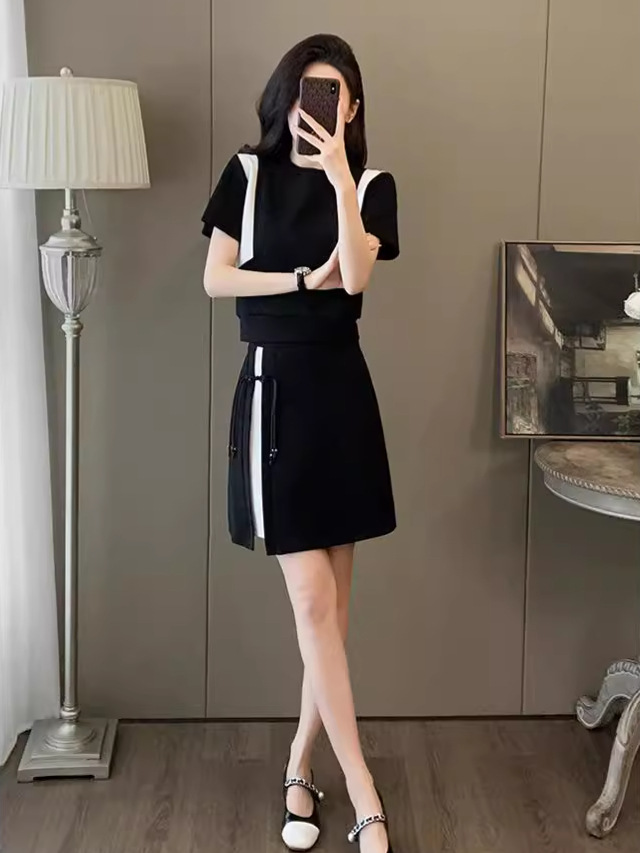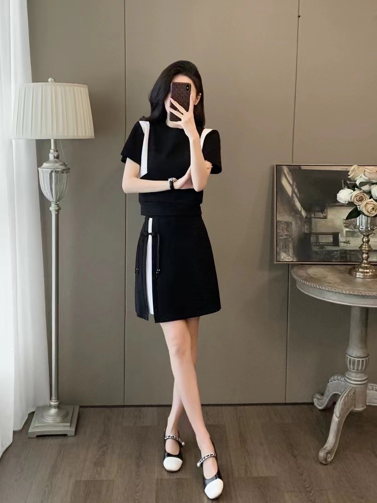 | nameOriginal | Design sense fashion suit skirt women's 2024 spring and summer short sleeve short skirt with a set of spot |