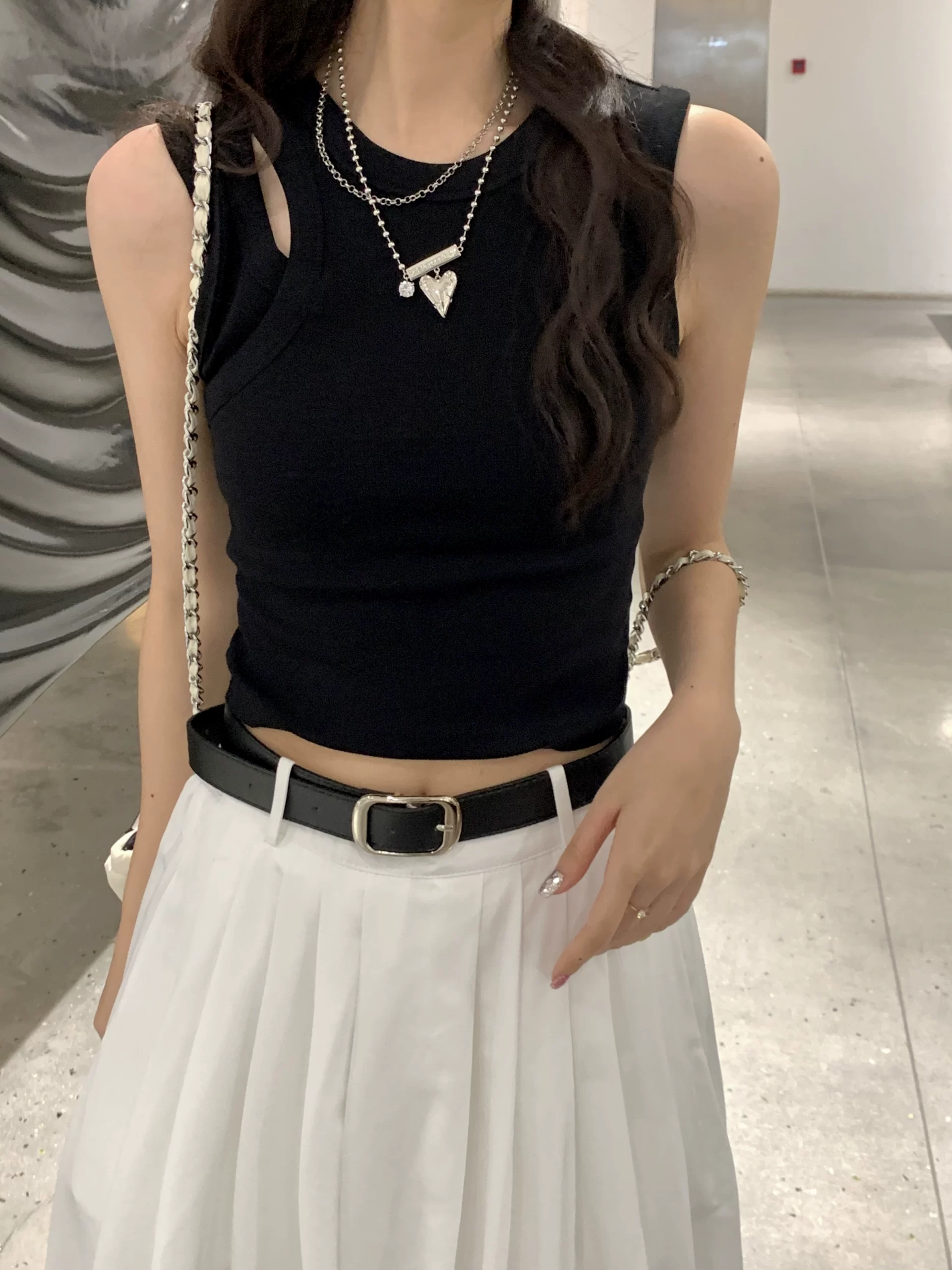 | nameOriginal | Design sense hollow black sleeveless vest for women summer 2024 new short sexy versatile tight outer top |