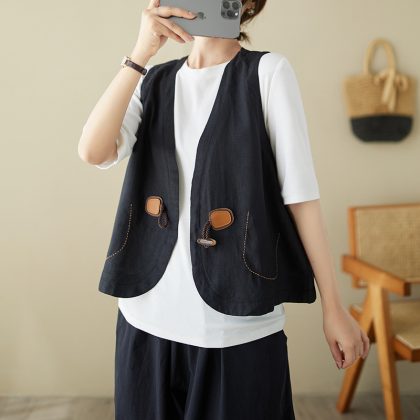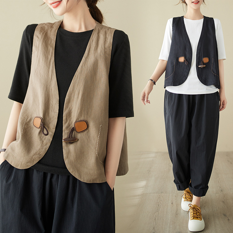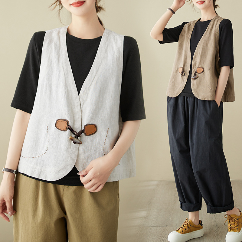 | nameOriginal | Design sense horn buckle cotton and linen vest women's summer casual plus size sleeveless waistcoat loose all-match linen top thin |