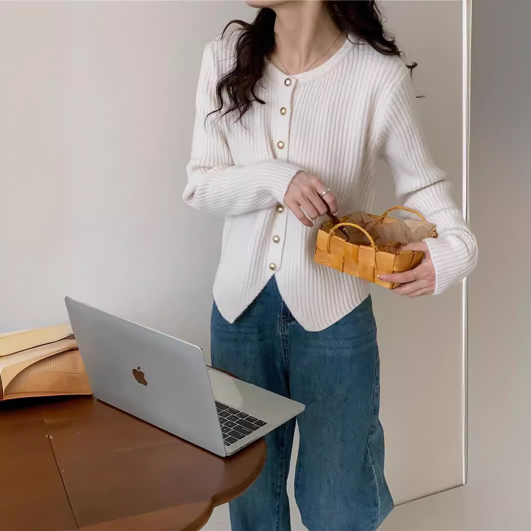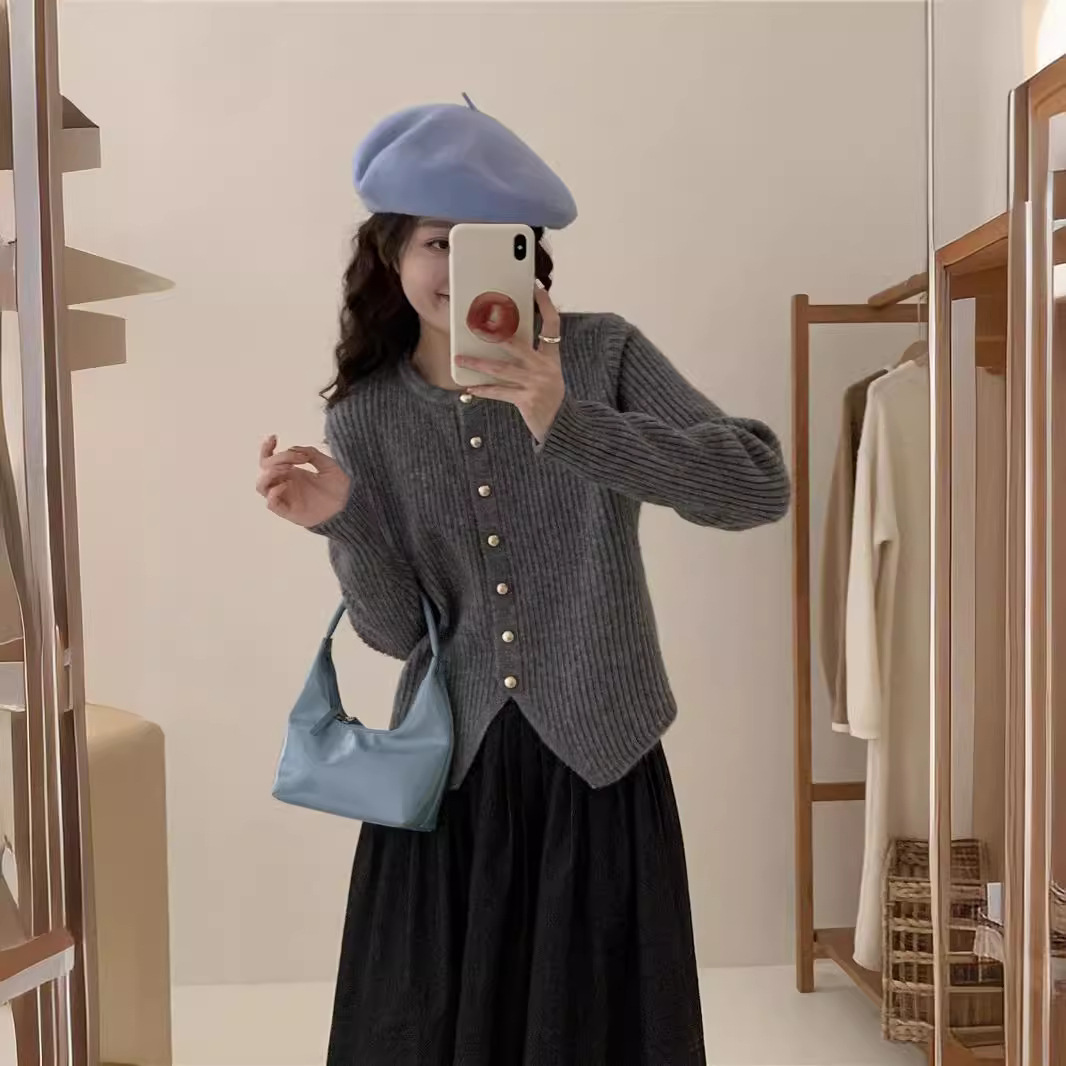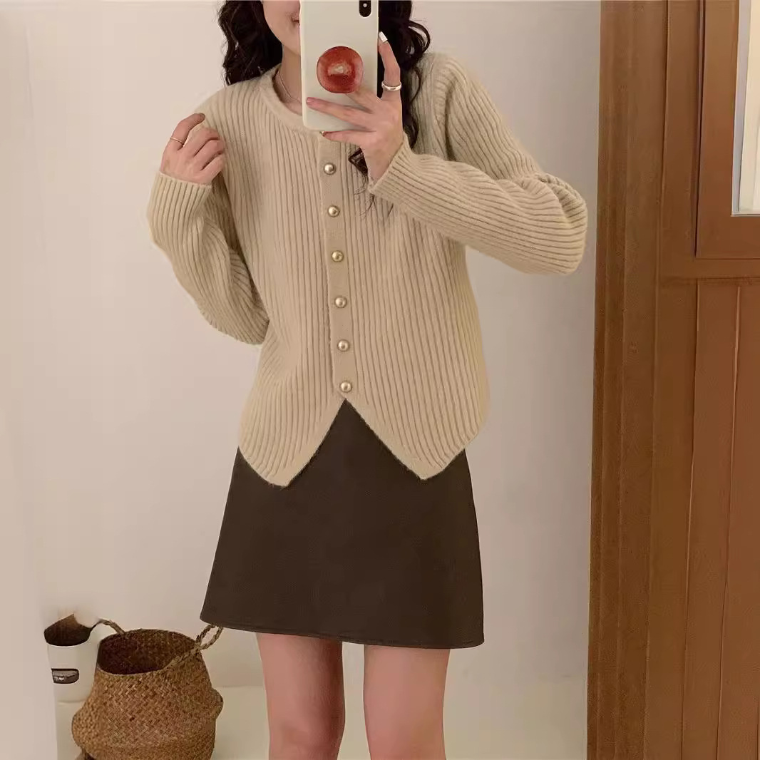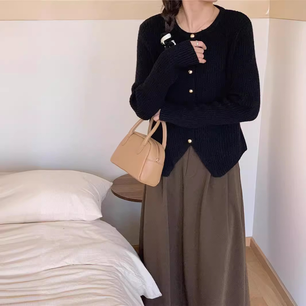 | nameOriginal | Design Sense Irregular Hem Round Neck Single-breasted Knitted Cardigan Women's Autumn New Solid Color Long-sleeved Sweater Jacket |