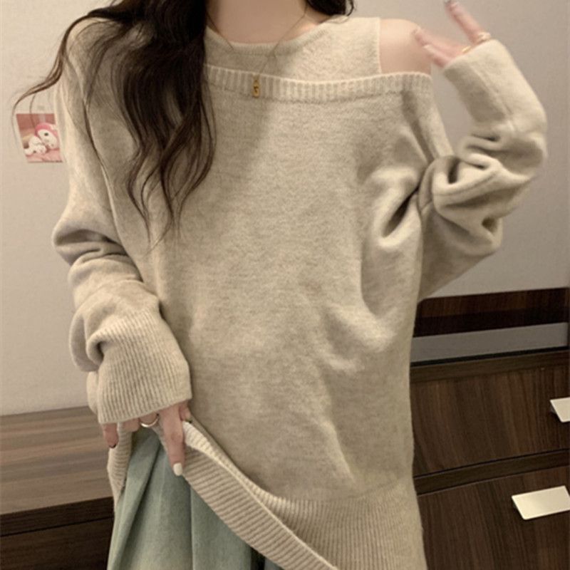 | nameOriginal | Design Sense Lazy Style Loose Shoulder Long-sleeved Sweater Knitted Vest Women's Autumn 2024 New Fashion Two-piece Set |