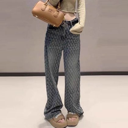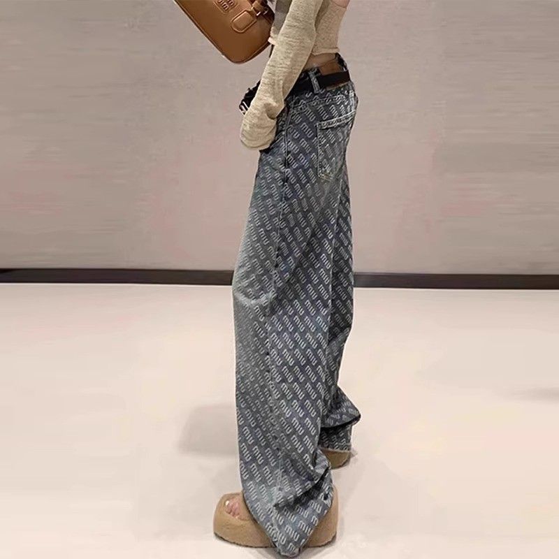 | nameOriginal | Design Sense Letter Printed Straight Leg Jeans Women's 2024 Spring and Summer New High Waist Loose All-match Wide Leg Pants |