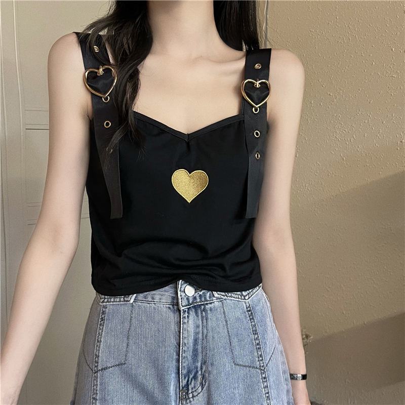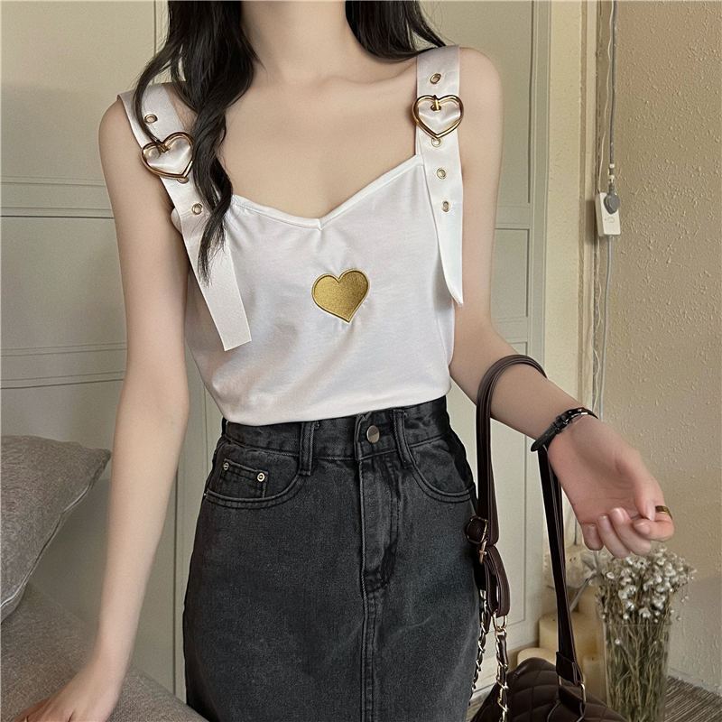 Design Sense Love Embroidered Spice Girl Strapless Camisole Women’s Summer Inner Wear Outer Wear Western Style Short Sleeveless Top