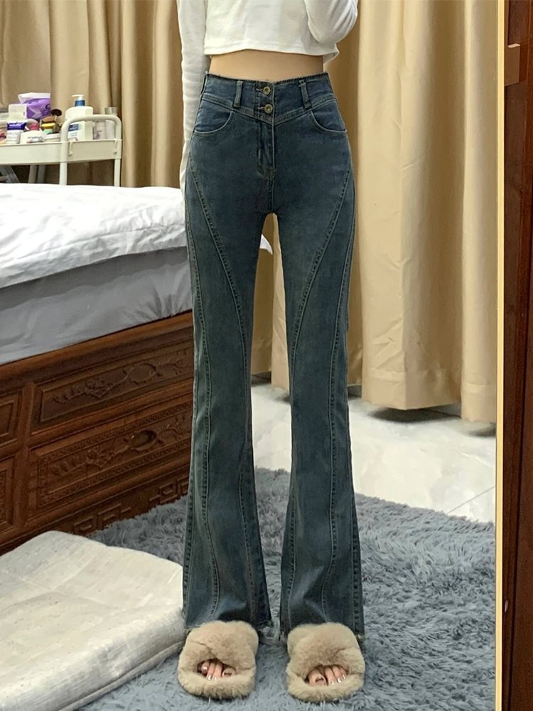 Design Sense Micro La Jeans Women’s Summer Fat Sister mm High Waist Slimming Straight Pants Pear-Shaped Pants