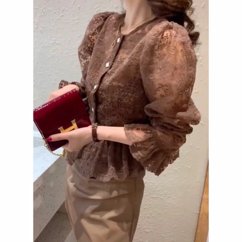 | nameOriginal | Design Sense Niche 2022 Autumn New Water-soluble Embroidered Mesh Shirt Slim-fit Slimming Top Base Shirt Women |