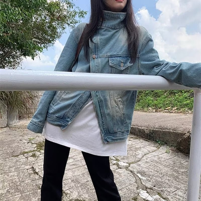 | nameOriginal | Design Sense Niche Denim Jacket Women's Retro Spring and Autumn New Korean Style Irregular Jacket Loose Fried Street Fashion |