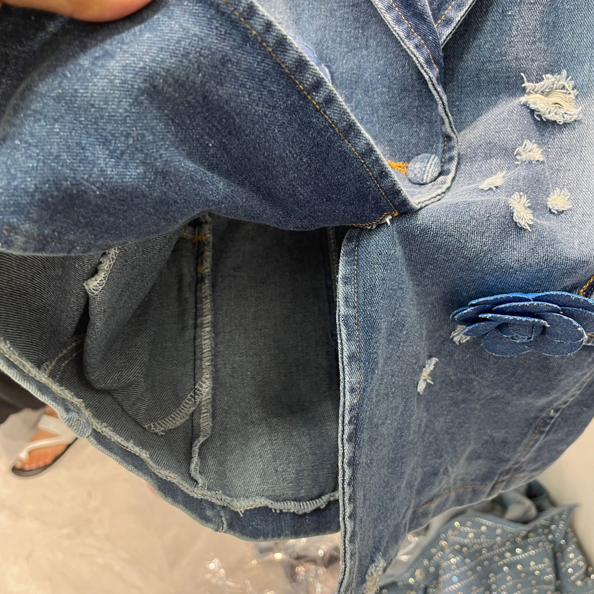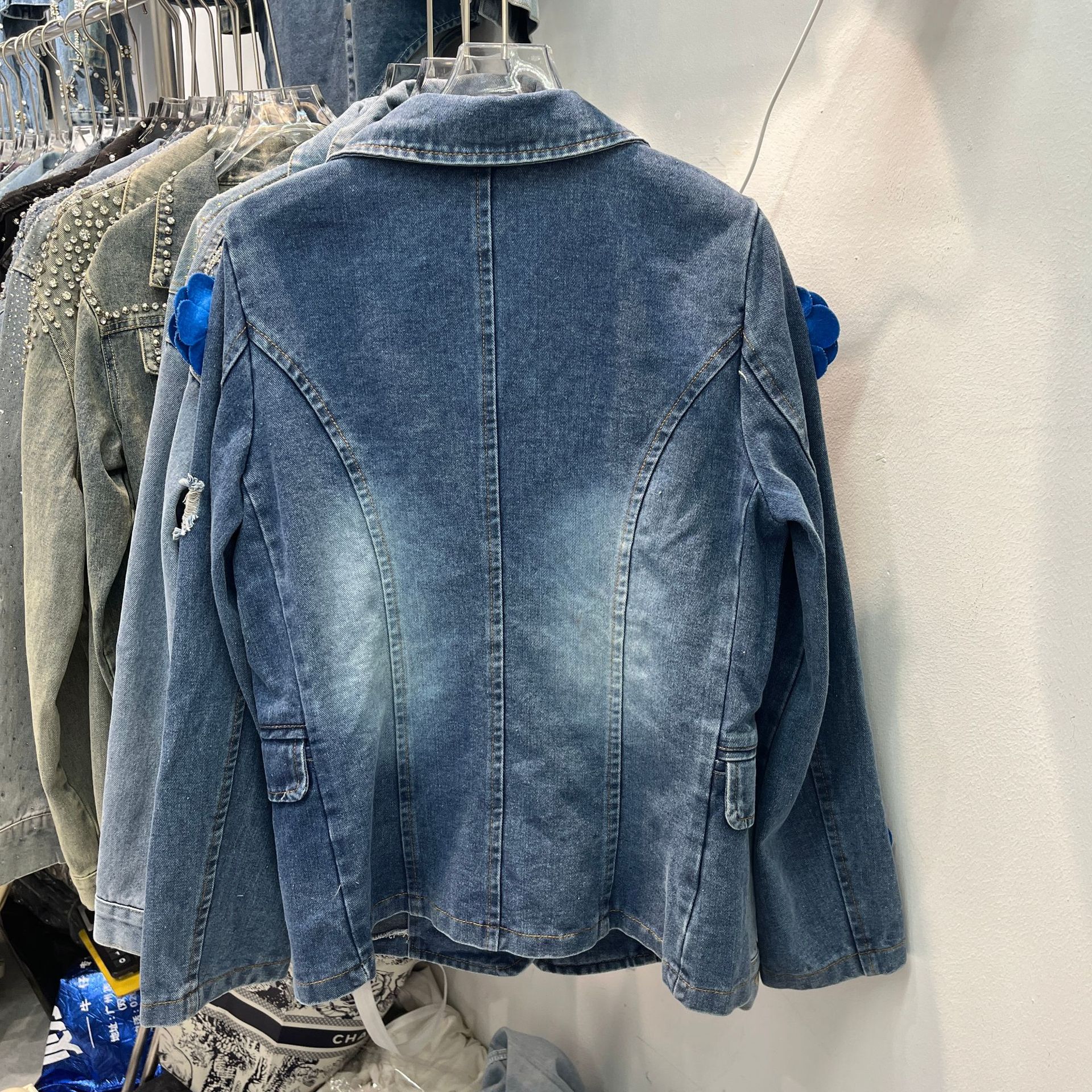 | nameOriginal | Design Sense Niche Denim Jacket Women's Spring and Autumn New Old Rick Hole Three-dimensional Flower Decorative Casual Suit Top |