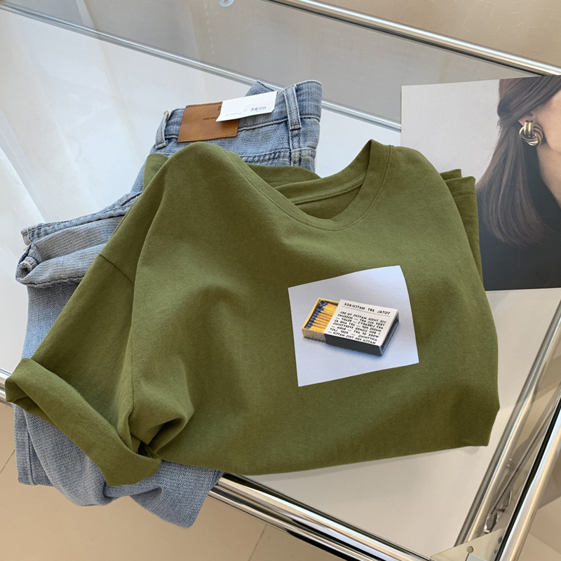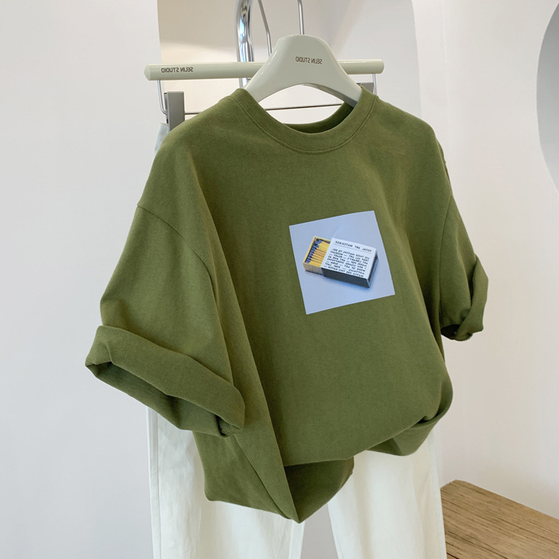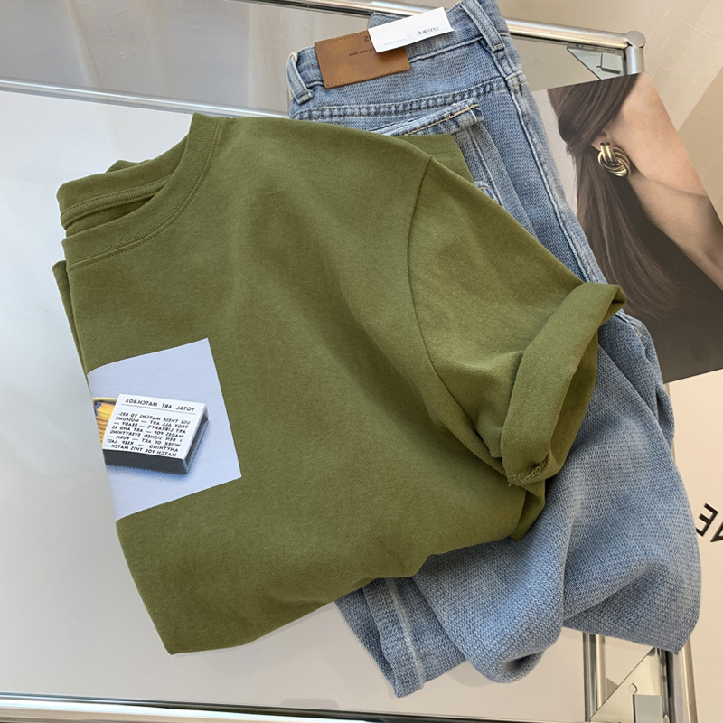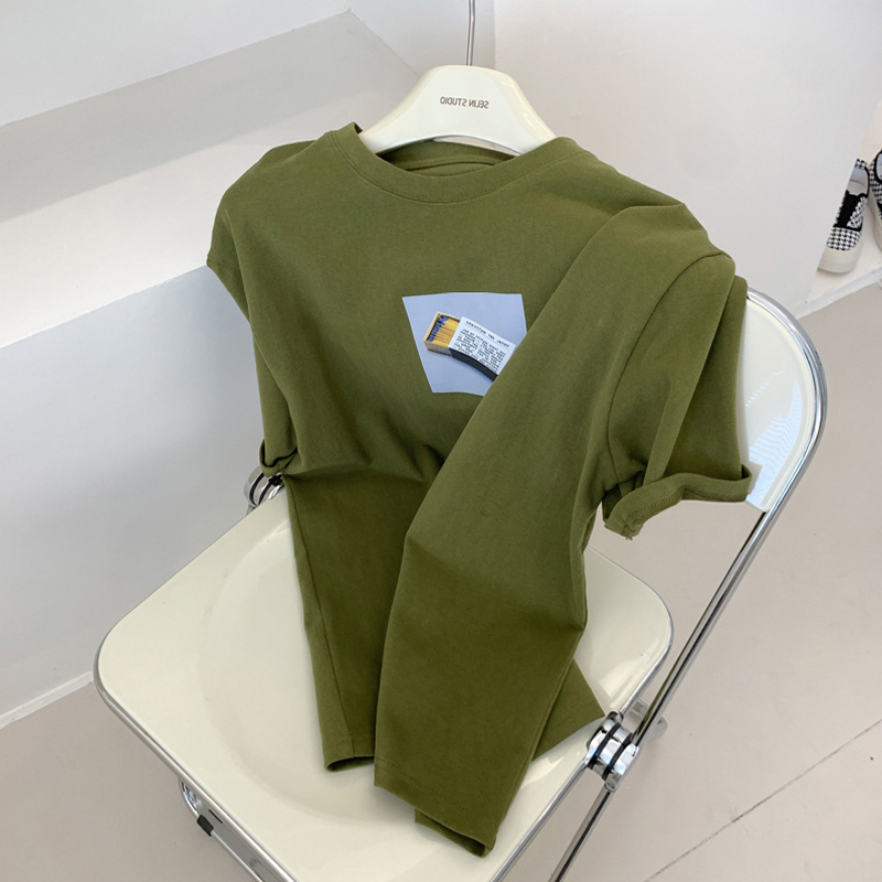 | nameOriginal | Design Sense Niche Green Short-sleeved T-shirt Women's Summer 2024 New Shoulder Crewneck Loose Base Shirt Top Ins |