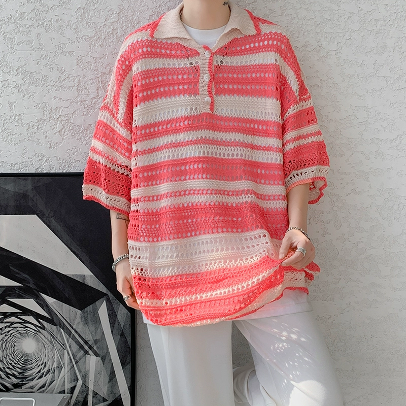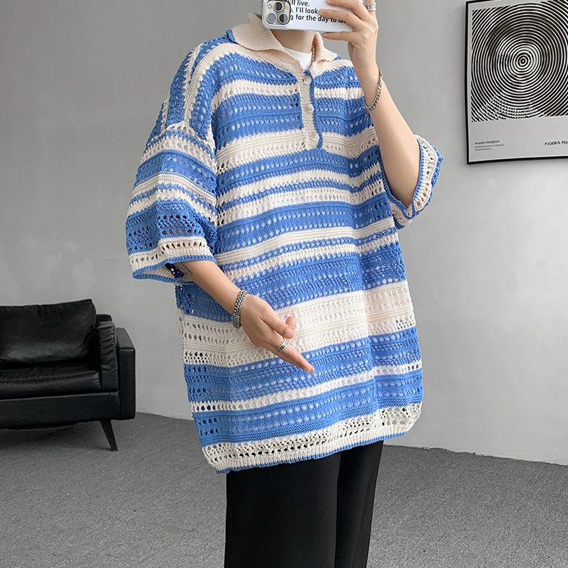 | nameOriginal | Design sense niche hollow polo collar T-shirt men's summer clothing plus fat large size trendy fat people loose handsome top half sleeve |