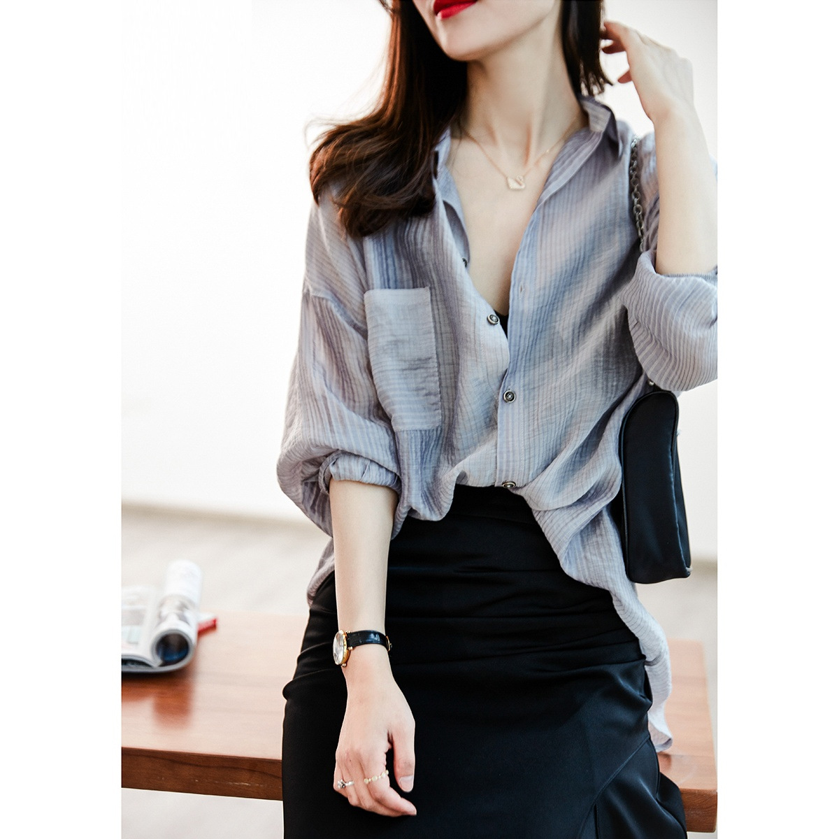 | nameOriginal | Design Sense Niche Hong Kong Style Retro French Style Elegant Loose Top Lazy Style Long Sleeve Shirt Women's Early Spring |