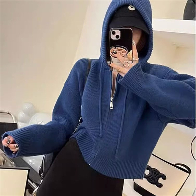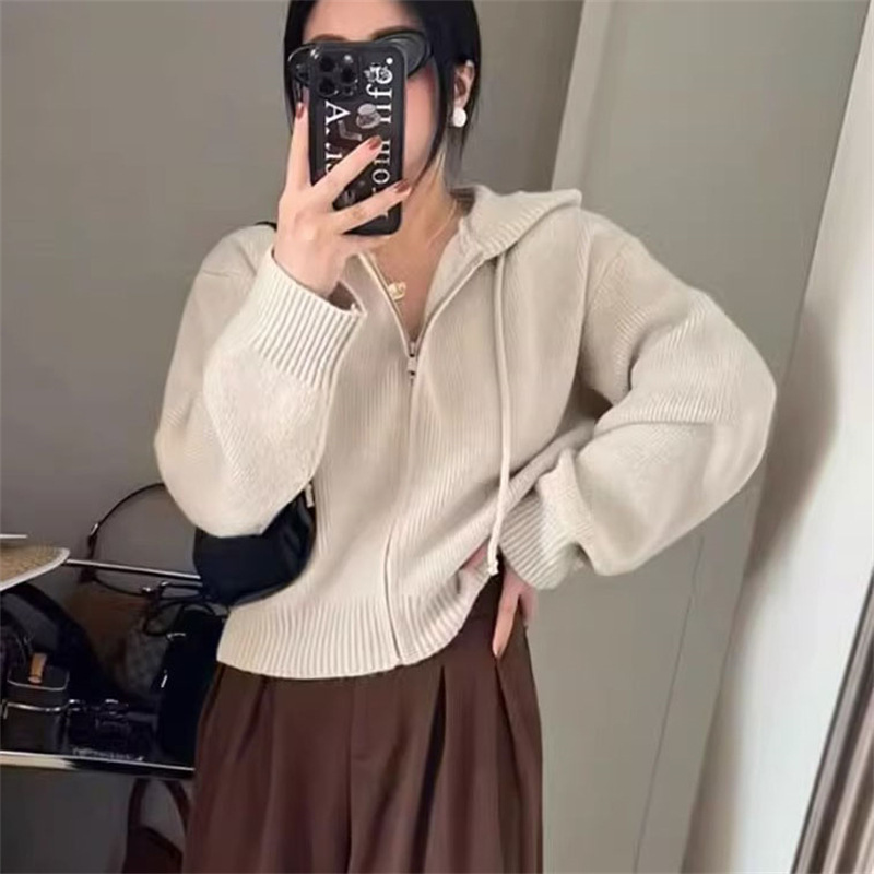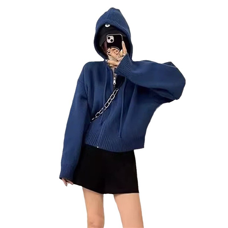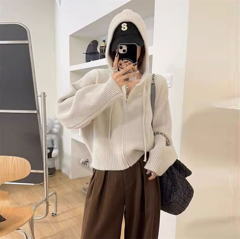 | nameOriginal | Design sense niche loose hooded sweater short coat women's autumn and winter New retro soft glutinous zipper knitted cardigan |