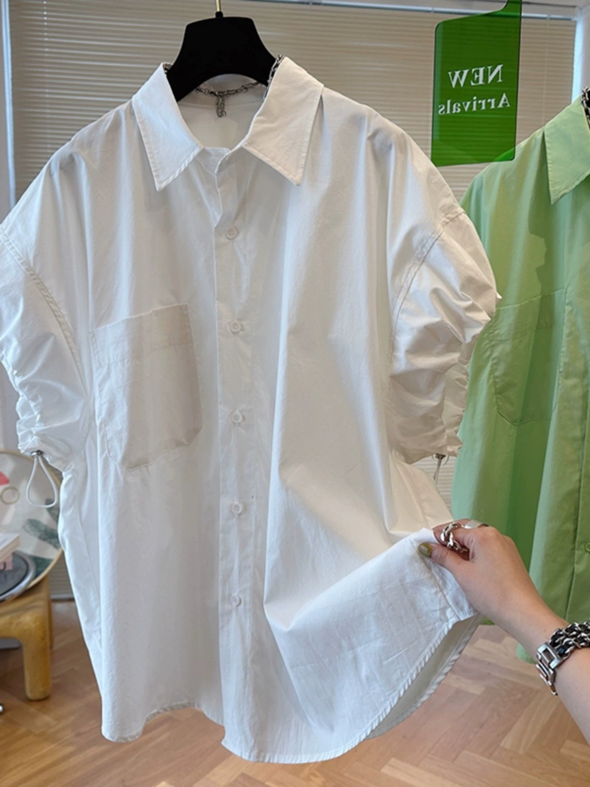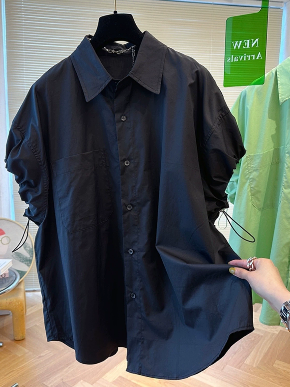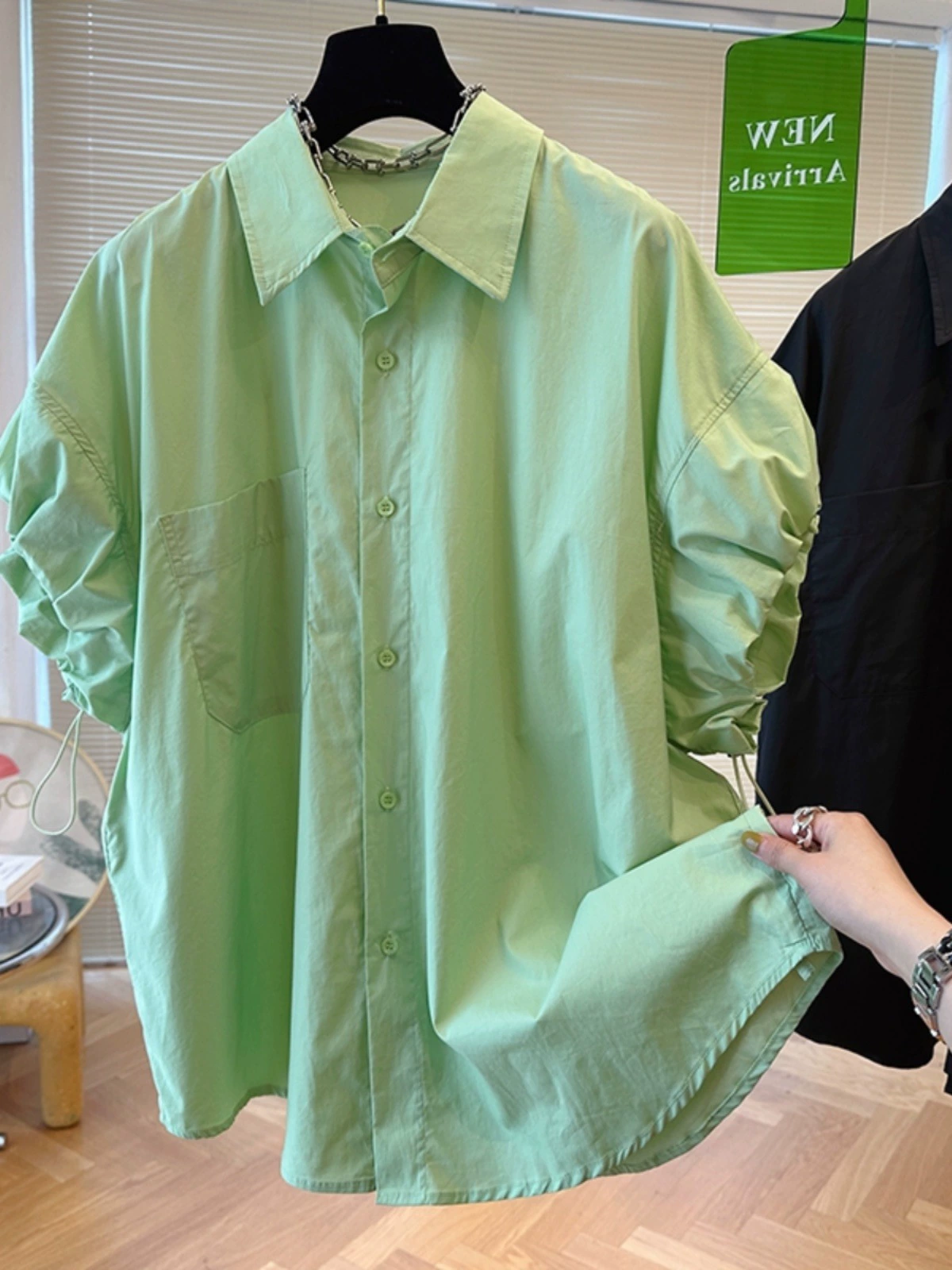 | nameOriginal | Design sense niche loose mint green short sleeves drawstring |
