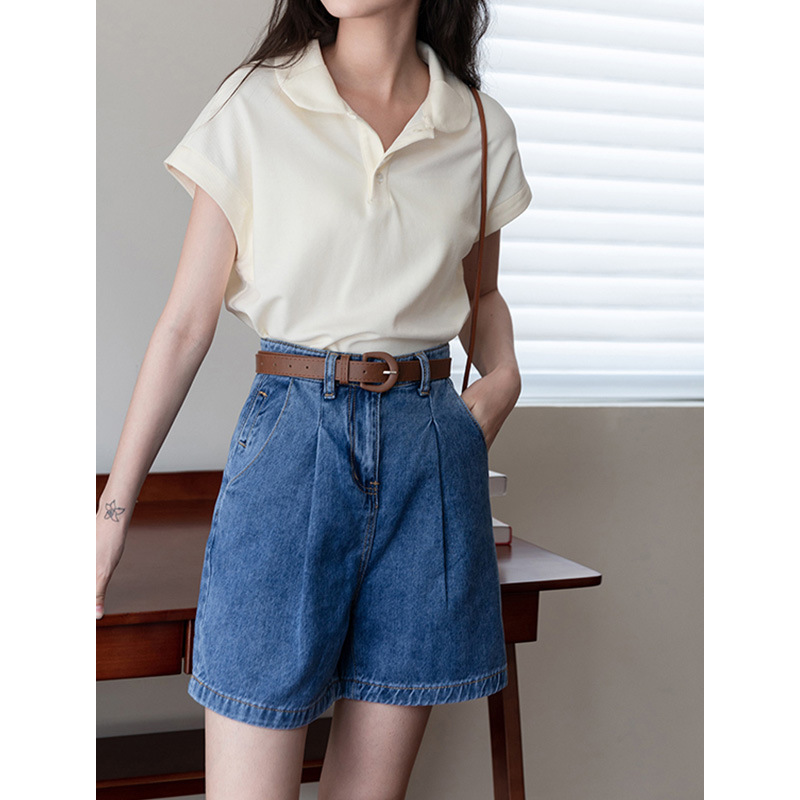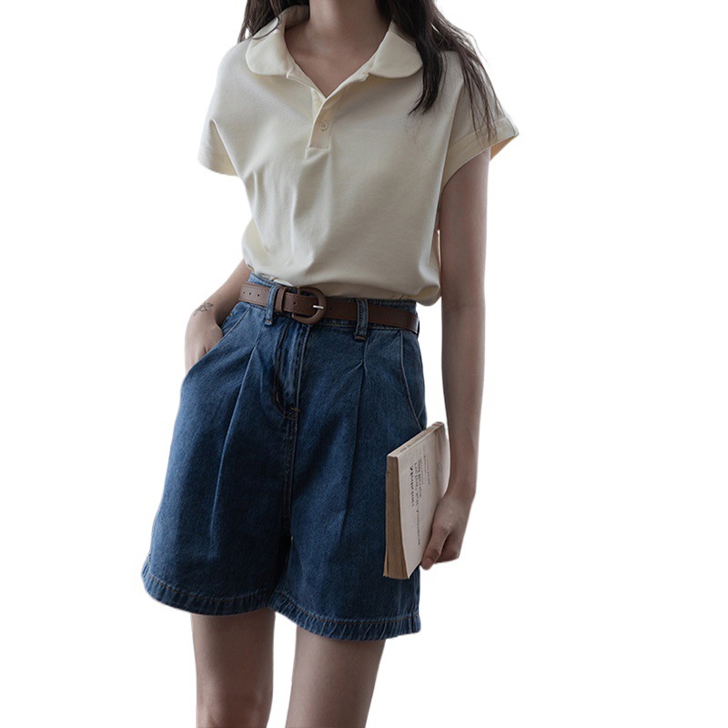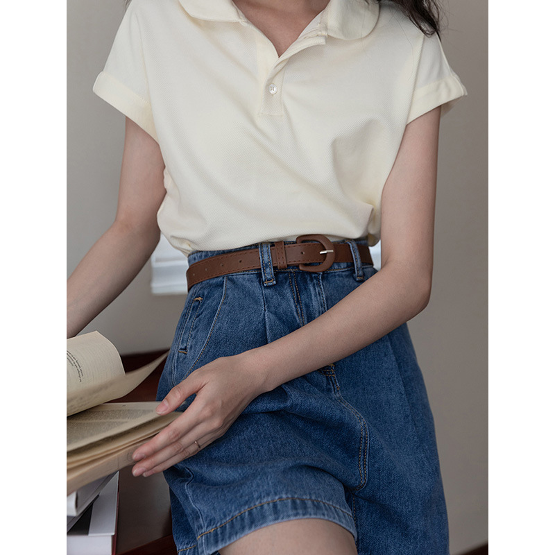 | nameOriginal | Design sense niche polo collar short-sleeved T-shirt women's summer 2024 New French retro chic lapel sleeve top |