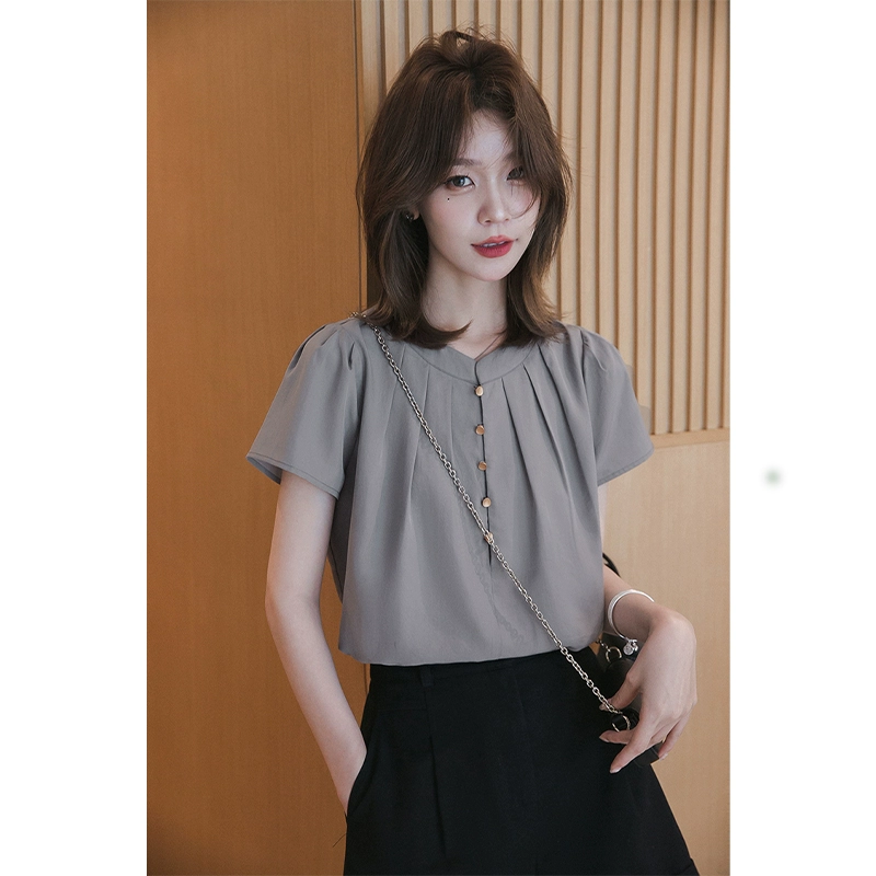 | nameOriginal | Design sense, niche shirring, fashionable casual round neck short sleeves |