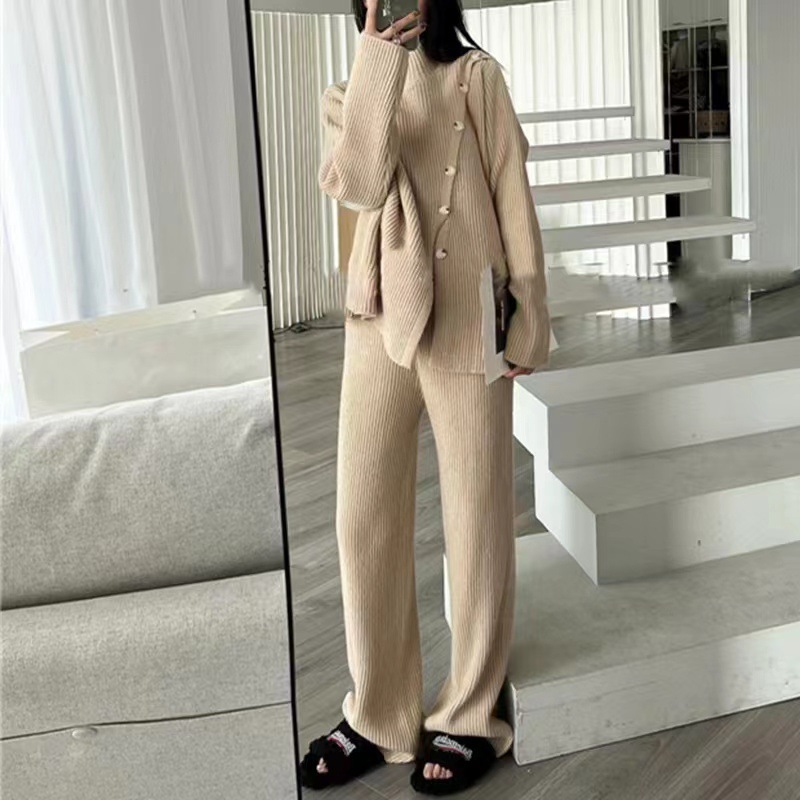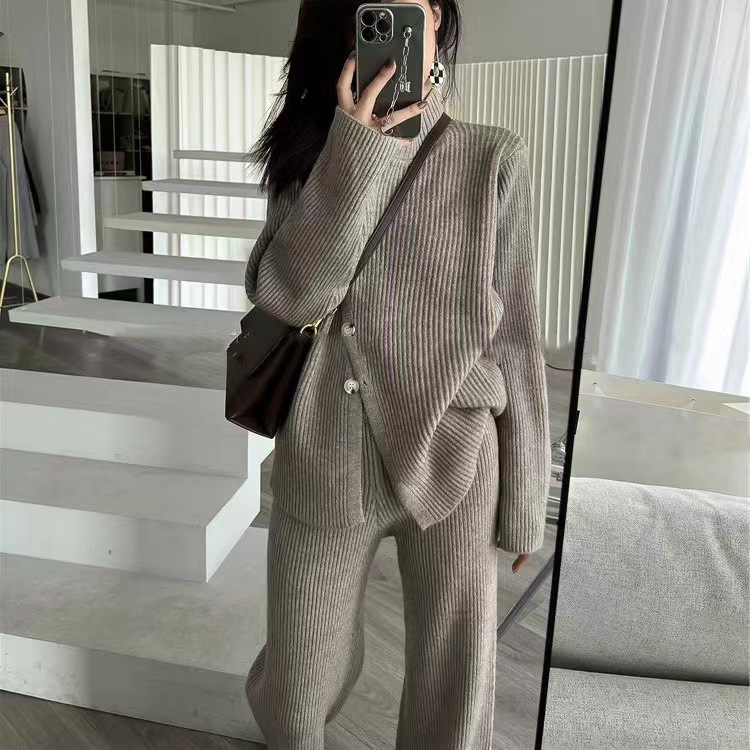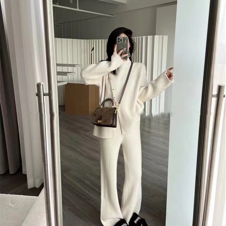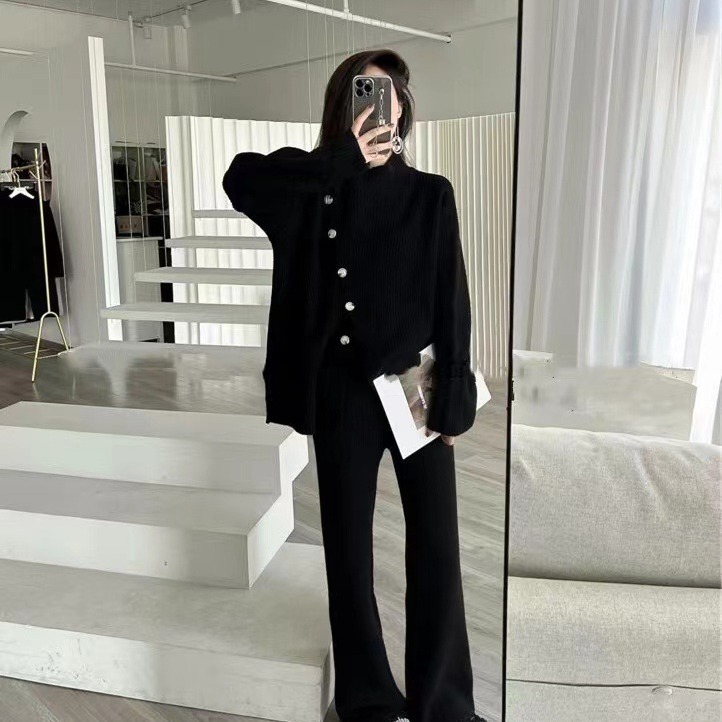 | nameOriginal | Design Sense Niche Vertical Collar Split Knitted Turtleneck Sweater Women's Winter Warm Age-reducing Casual Wide-leg Pants Two-piece Set |