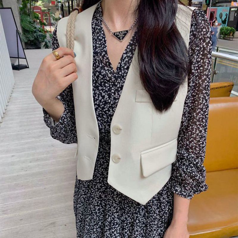 | nameOriginal | Design Sense Niche White Suit Vest Women's Summer New Vest Vest Thin Black Suit Small Waistcoat |