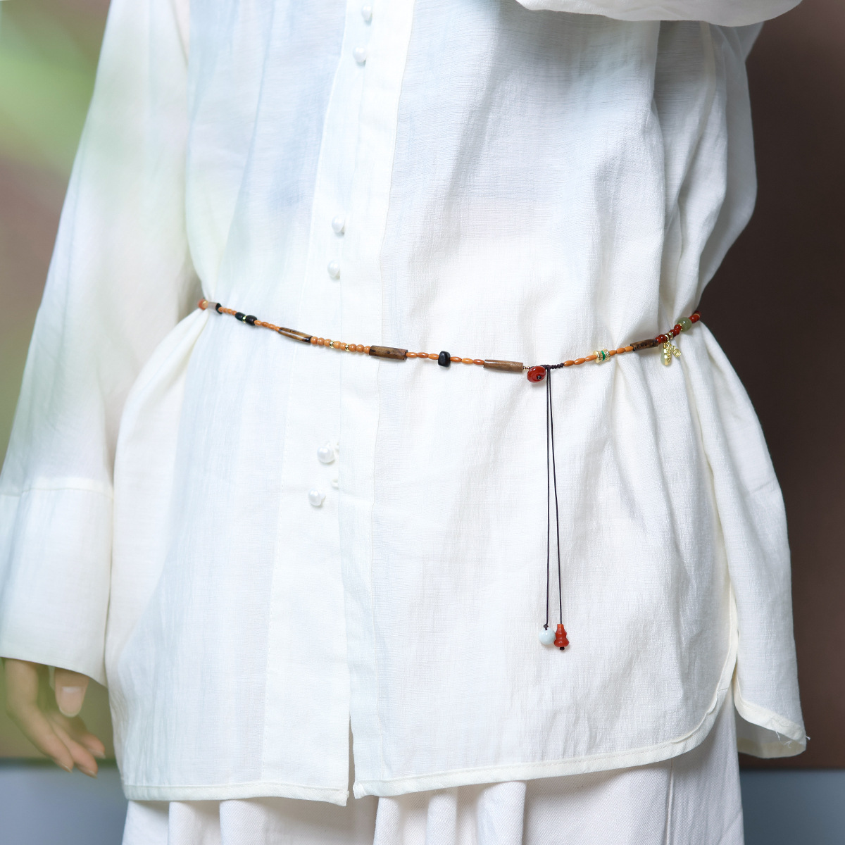 | nameOriginal | Design Sense Sea Willow Blood Willow Health Preservation Waist Chain Olive Nuclear Rice Pearl South Red Agate Round Bead Wen Play Personalized Body Chain Female |