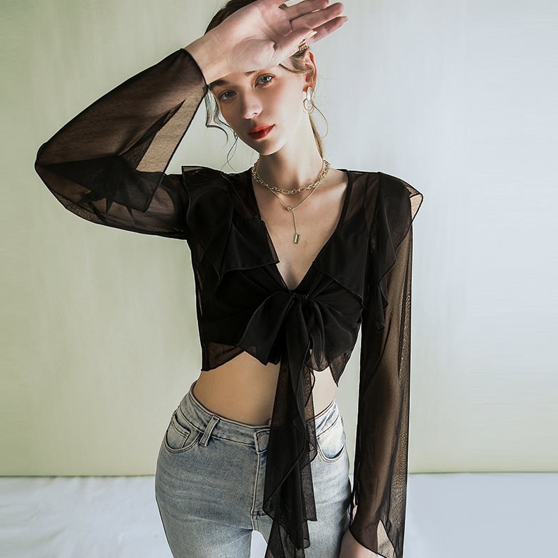 Design Sense Short Top Spring and Summer New Blouse Outer Wear Air-conditioning Shirt