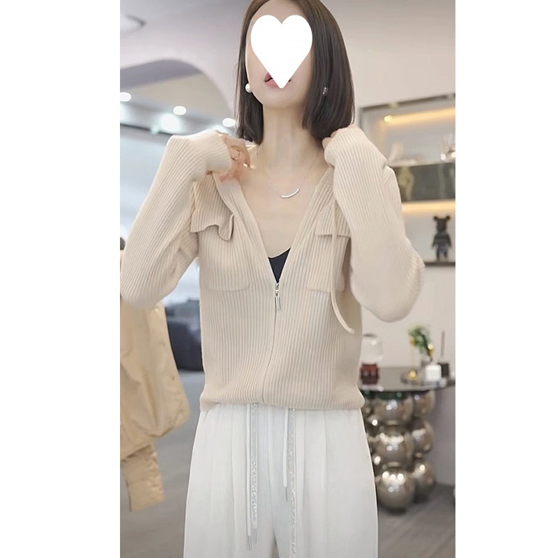 | nameOriginal | Design Sense Simple Hooded Zipper Sweater Cardigan Casual Elegant Slim-fit All-match Sweater Top |