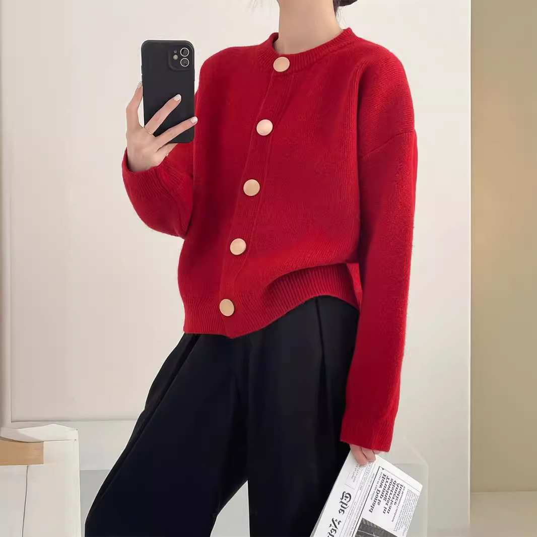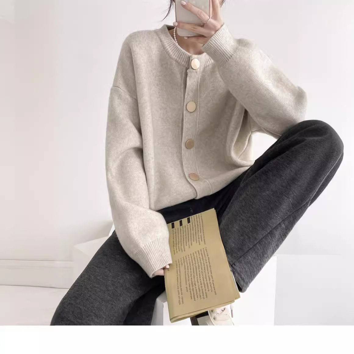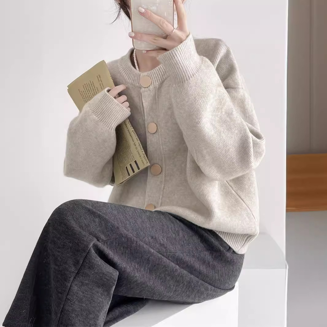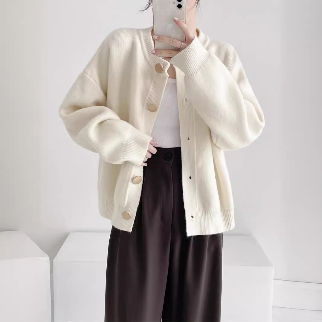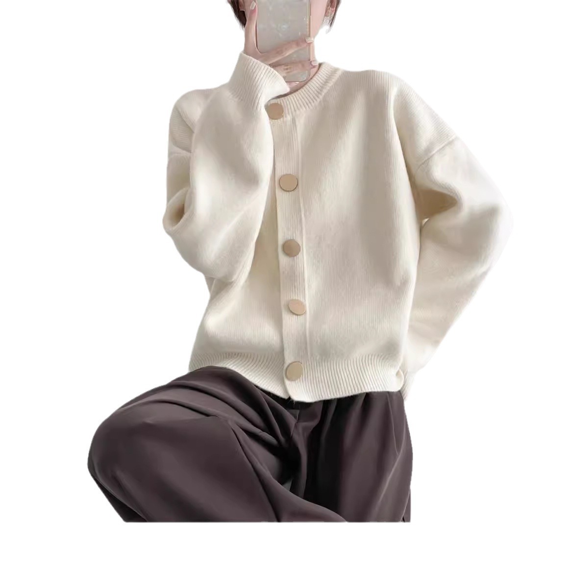 | nameOriginal | Design Sense Single-breasted Solid Color Knitted Sweater Jacket Cardigan Laid-back Loose Round Neck Fall/Winter French Retro Top |