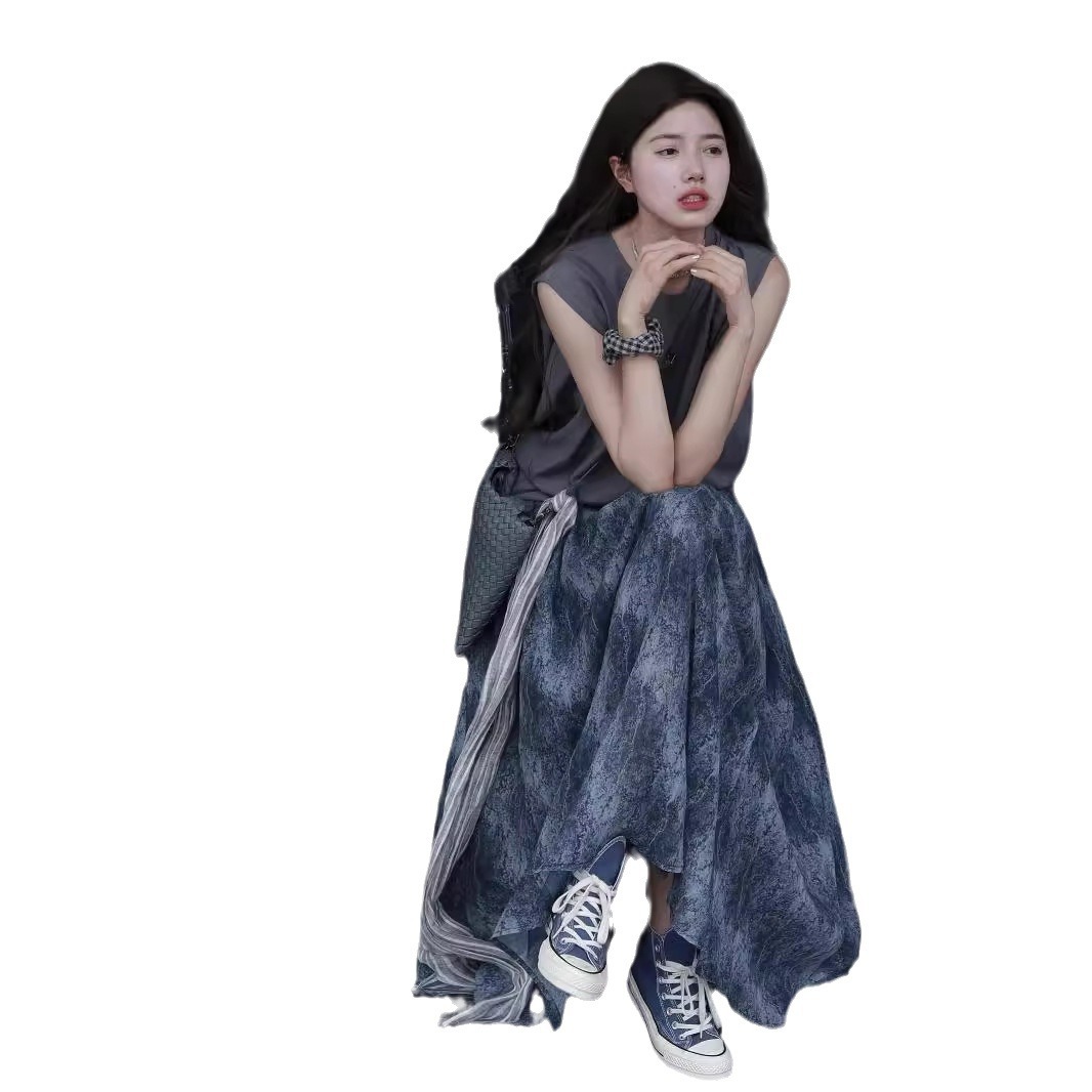 | nameOriginal | Design Sense Sleeveless T-shirt Top Dress suit Women's 2024 Summer New Fashion Elegant Skirt Two-piece Set |