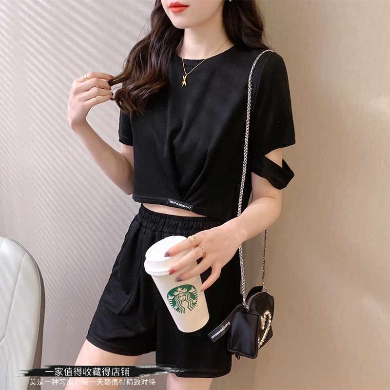 | nameOriginal | Design Sense Split Short-sleeved Round Neck Loose T-shirt Women's Summer Short Cropped Top Wide Leg Pants Shorts Two-piece Fashionable Set |