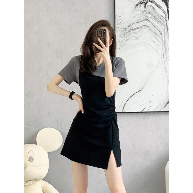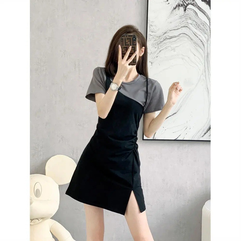 | nameOriginal | Design Sense Stitching Fake Two-piece Short-sleeved T-shirt Dress Women's Summer High-end Sense Tight Waist Pleated Split Hip Skirt |