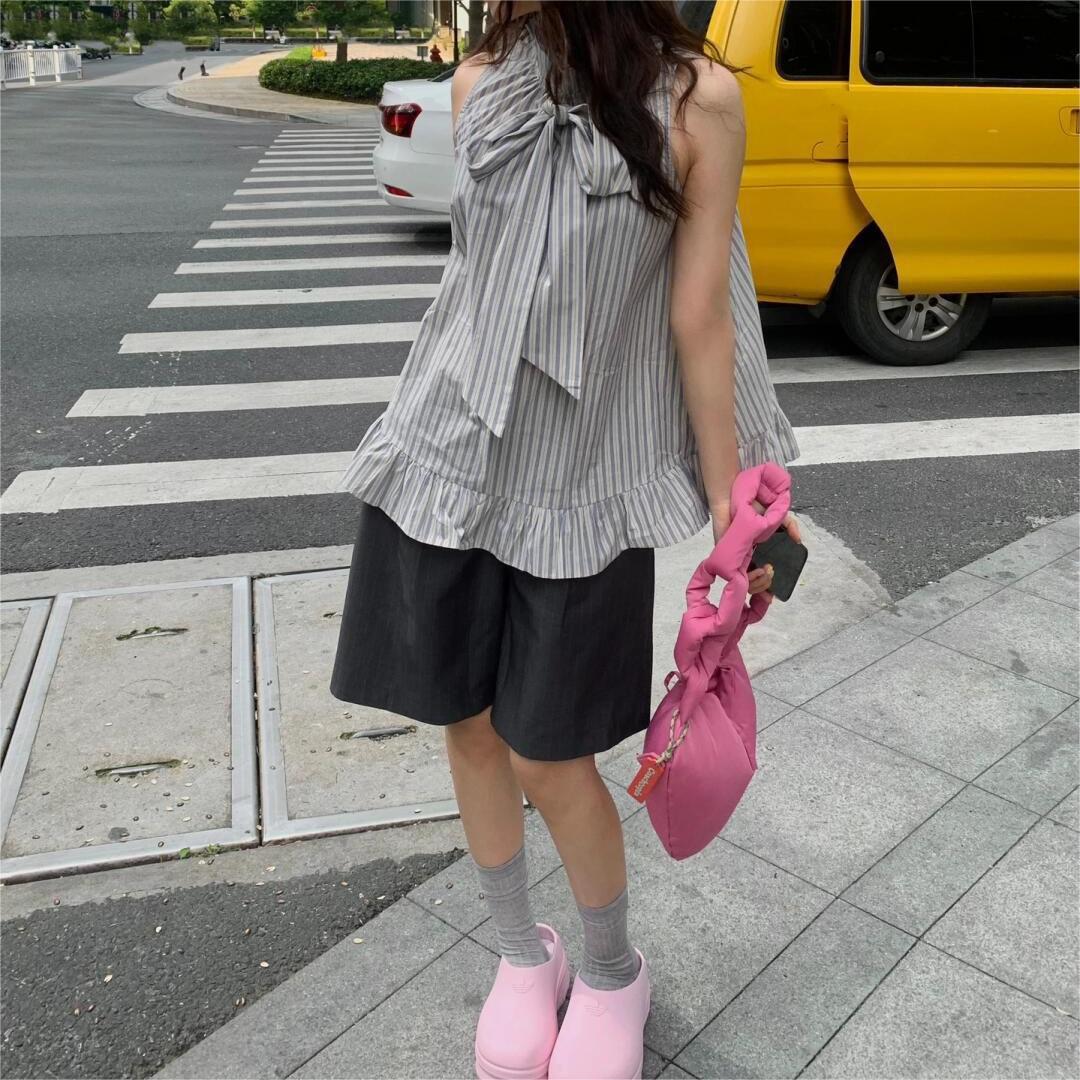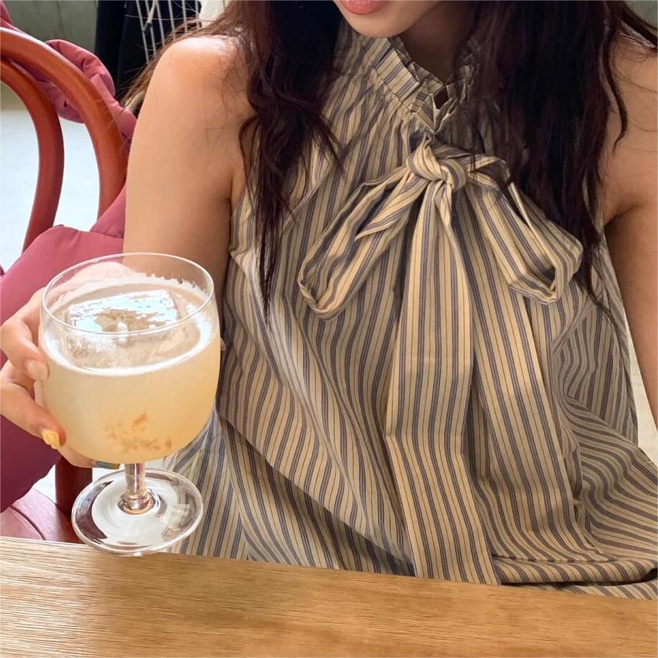 | nameOriginal | Design Sense Striped Collar Shirt Women's 2024 Summer Niche Chic Loose Mid-length Stitching Sleeveless Top |