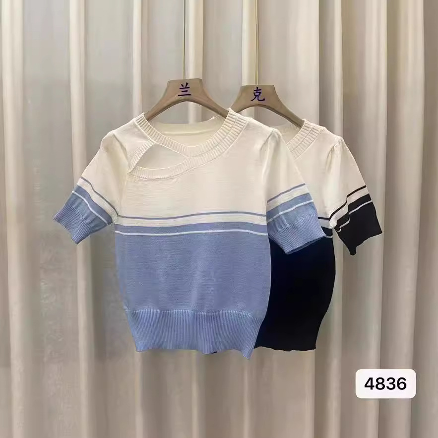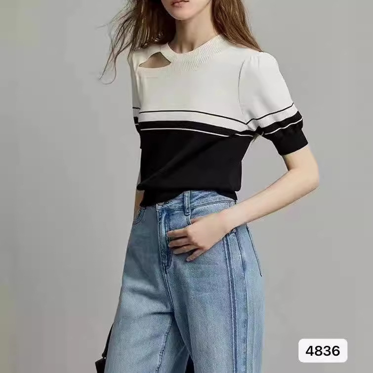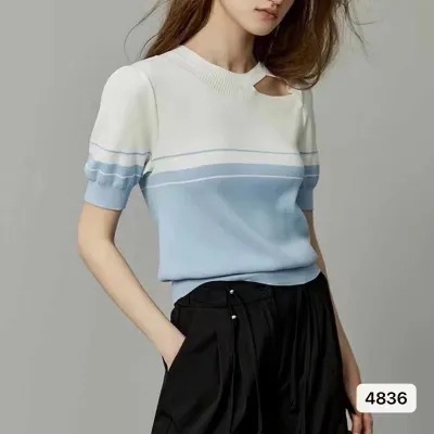 | nameOriginal | Design Sense Striped Color Block Hollow Wool Knit Sweater Women's 2024 Summer New Commuting Style Simple Outer Wear |