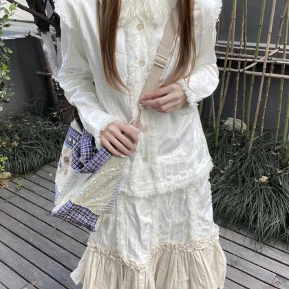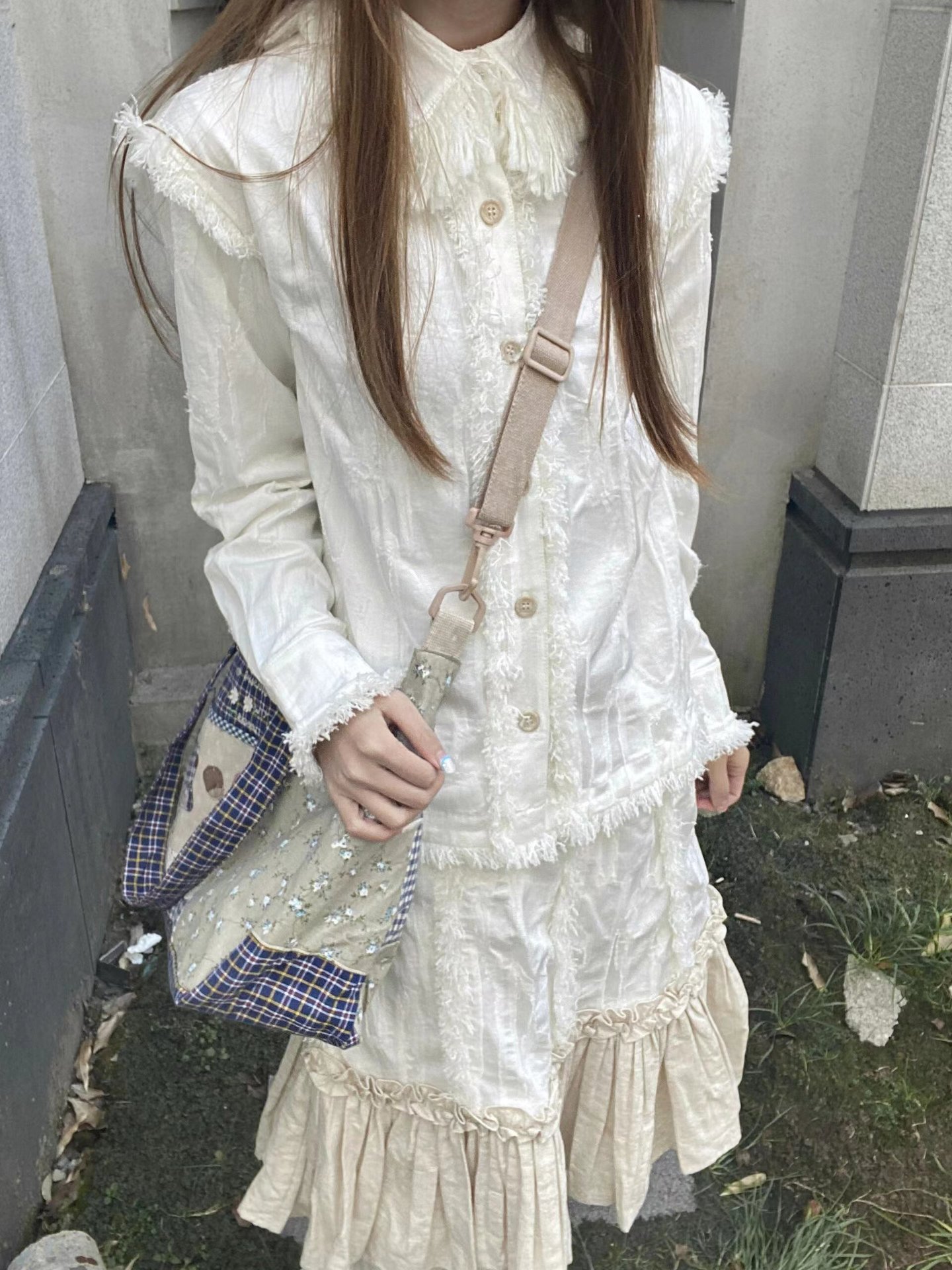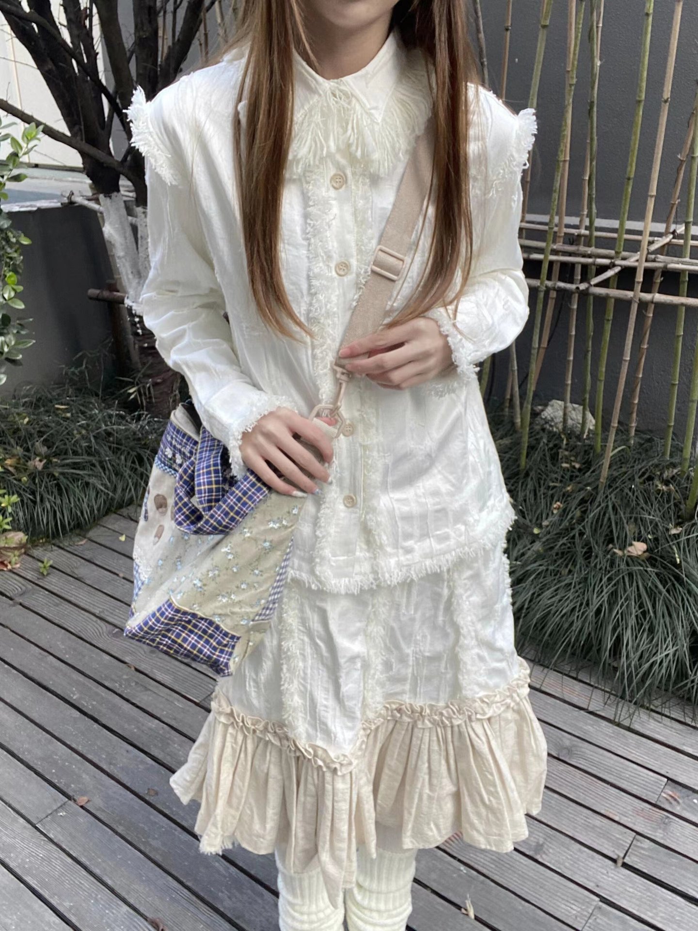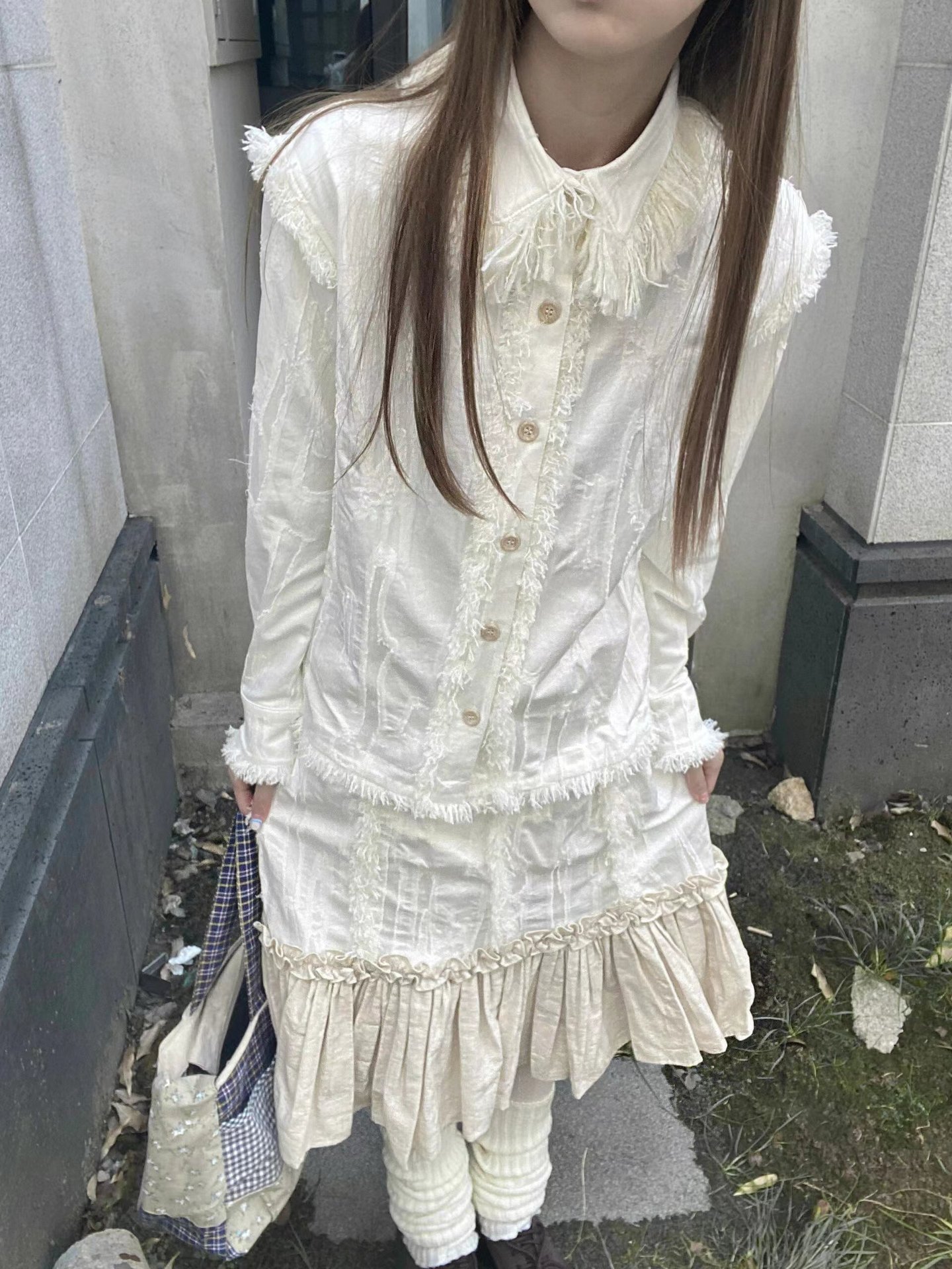 | nameOriginal | Design Sense suit White Tassel Fur Pleated Shirt 2024 Spring New Stitching Skirt |