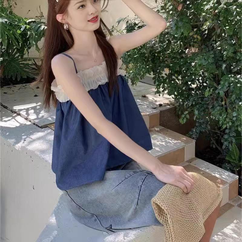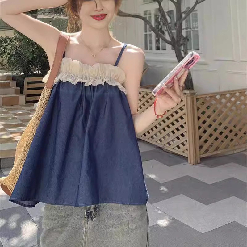 | nameOriginal | Design Sweet Spice Girl Ruffled Stitching Camisole Women's Summer New Holiday Shoulder Loose Sleeveless Top |
