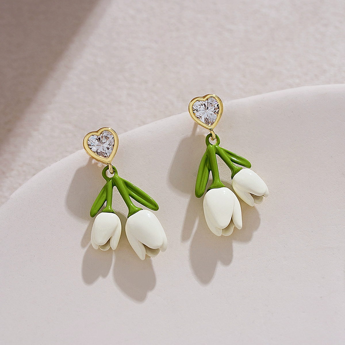 | nameOriginal | Design white tulip earrings spring and summer new green leaf earrings French white flower high-end love earrings |