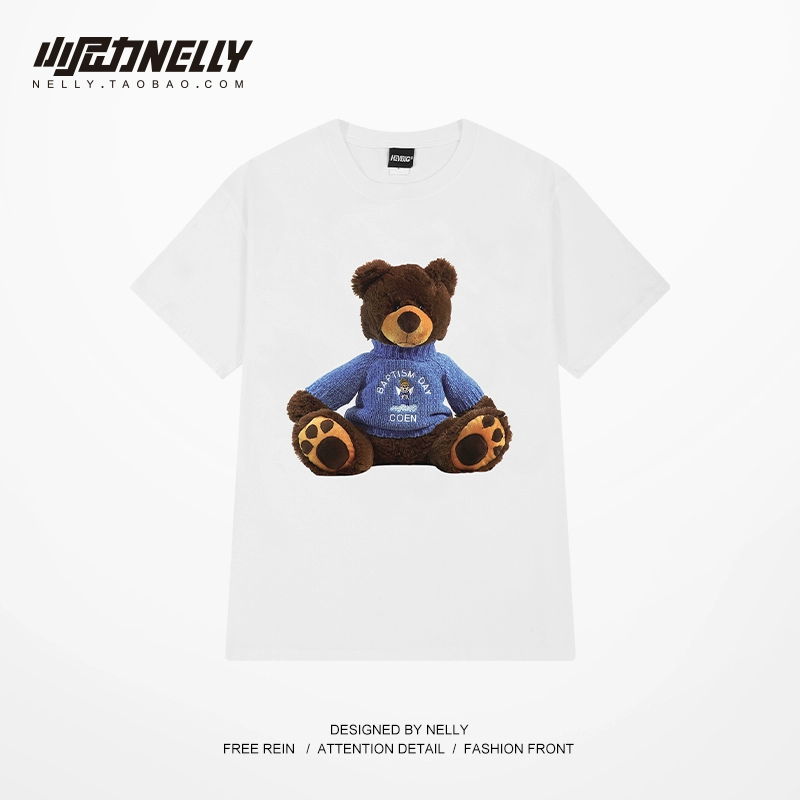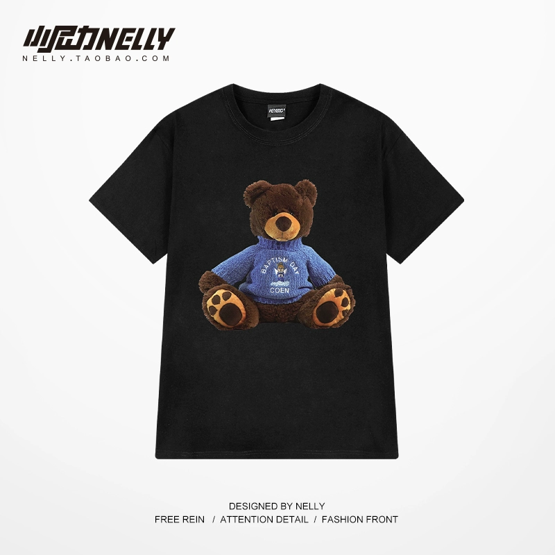 | nameOriginal | Designed bear print short-sleeved T-shirts for men and women, trendy summer loose and versatile trendy half-sleeved T-shirts. |